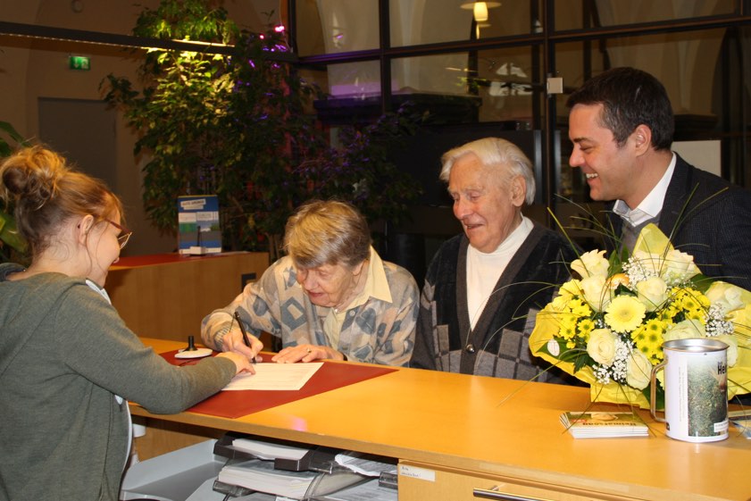 Im Jahre 2017 bei der Neubürger-Anmeldung im Rathaus: Theresa Holzmayr von der Stadtverwaltung (von links), Elisabeth Malecki, Gerhard Malecki, Bürgermeister Thomas Herker (Archivfoto).