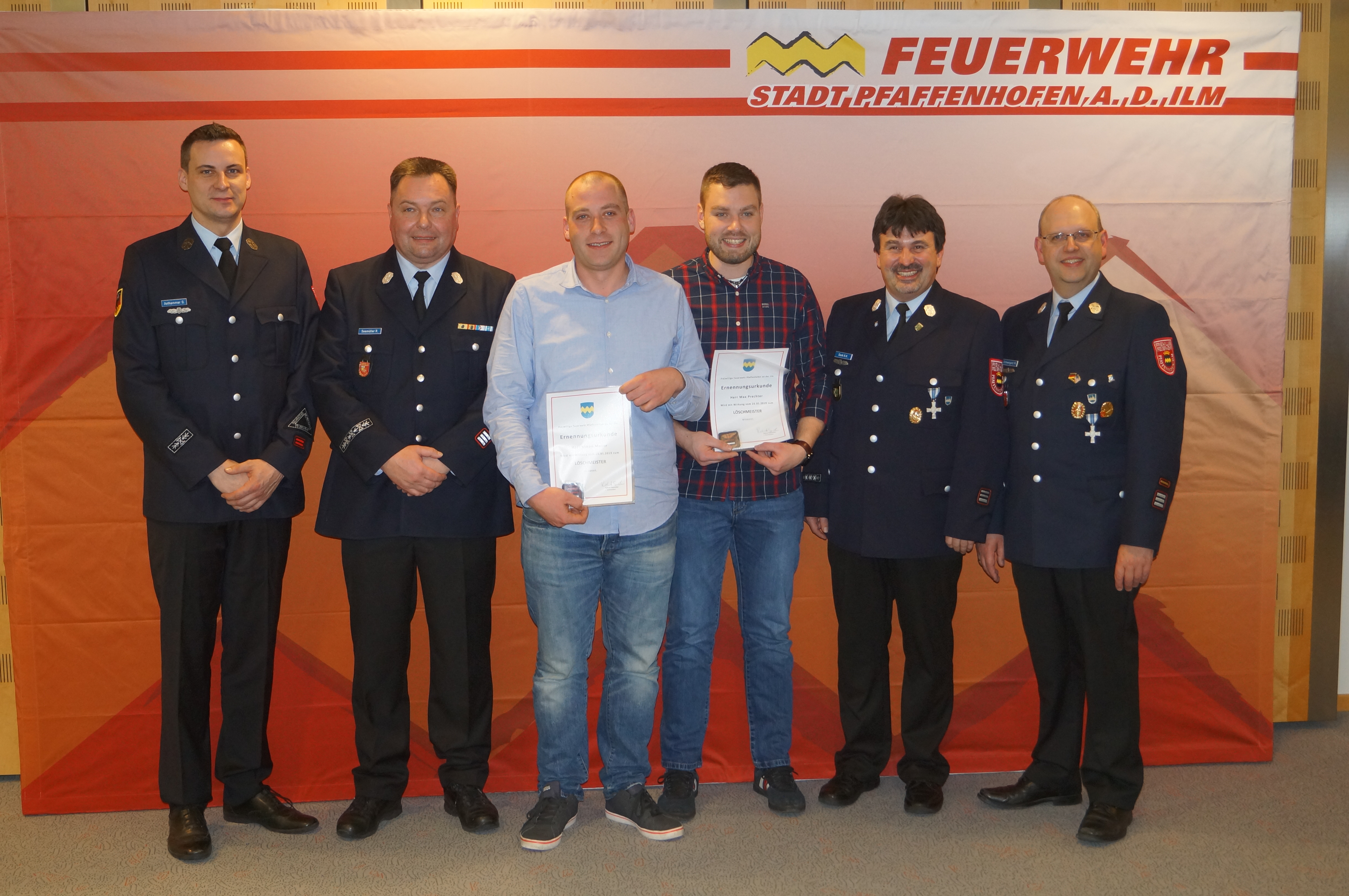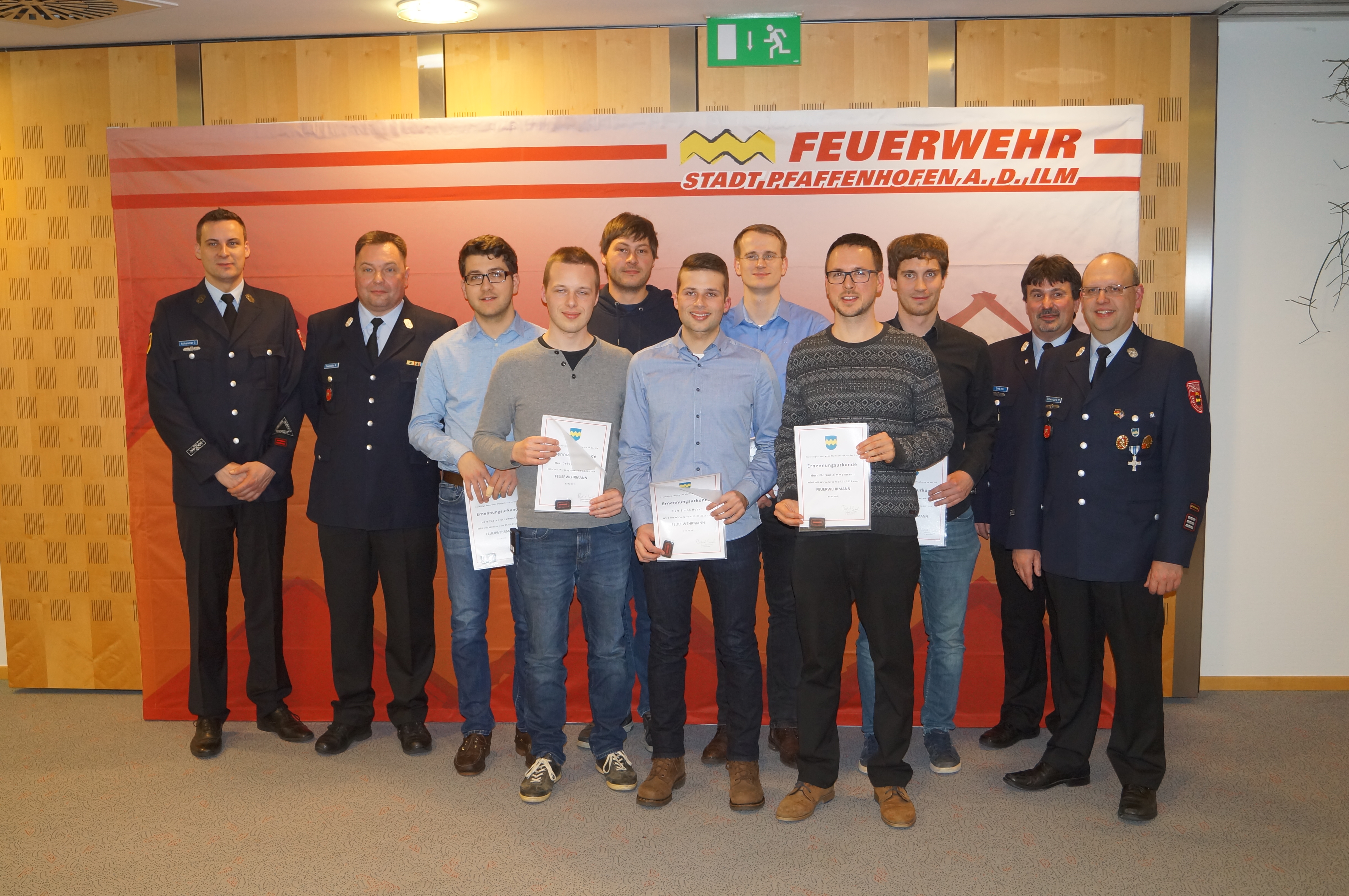 Damit waren die Personalien aber noch nicht erschöpft: Jörg Brendel, Armin Hergl, Sebastian Huber, Simon Huber, Fabian Schuhmann, Manuel Seeberg und Florian Zimmermann wurden zu Feuerwehrmännern ernannt. Außerdem durften sich Peter Köpf und Andreas Heckmeier über die Beförderung zum Oberfeuerwehrmann freuen. Simon Moser und Max Prechter sind nun Löschmeister und Christian Schröder gar Oberlöschmeister. Nur eines fehlte gestern Abend noch: ein Schäffler-Tanz. Schließlich gehört der Großteil der Pfaffenhofener Brüder im Kranze auch der Feuerwehr an.