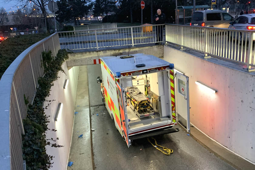 Rettungswagen kracht gegen Unterführung