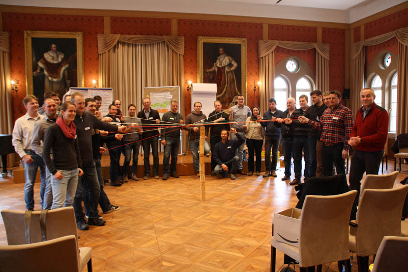 Bei einem Kennenlern-Spiel erlebten die Teilnehmer, wie wichtig es ist, dass alle an einem Strang ziehen.
