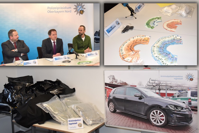 Bei einer folgenden Durchsuchung des Flucht-Fahrzeuges seien die Ermittler "schnell fündig" geworden, berichtet ein Sprecher des Polizeipräsidiums Oberbayern-Nord. "In großen Sporttaschen verstaut, stellten sie insgesamt 25 Kilogramm Marihuana und ein Kilogramm Kokain sowie eine Schreckschuss-Waffe sicher." Im Zuge der anschließenden Wohnungs-Durchsuchungen bei den drei Tatverdächtigen seien dann bei dem 32-Jährigen noch 8000 Euro in bar gefunden worden. Auch dieses Geld sei sichergestellt worden.