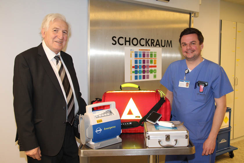 (ty) Der Verein „Leben retten“ hat sich zum Ziel gesetzt, insbesondere die Notfallversorgung im Landkreis Pfaffenhofen sicherzustellen und unterstützt daher Rettungsdienste, Klinken und Notärzte mit Spenden. Die Zentrale Notaufnahme der Ilmtalklinik Pfaffenhofen hat nun vom Verein eine Kindernotfalltasche, ein Video-Laryngoskop und eine Absaugpumpe, die auch für Kinder geeignet ist, finanziert bekommen (Foto oben). Dr. Philipp Lakatos, Leiter der Notaufnahme der Ilmtalklinik, freute sich über die Spende: „Gerade für Kinder waren wir noch nicht optimal ausgerüstet. Wir danken dem Verein herzlich für die Unterstützung.“