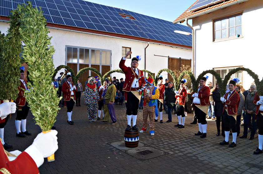 (akl) Rund 150 Gäste begrüßten heute Nachmittag die Schäffler aus Eschelbach im Schweitenkirchener Ortsteil Frickendorf (Foto oben). Die Brüder im Kranze, darunter auch Lokalmatador Daniel Eis, tanzten im Hof von Thomas Mitterhuber und verbreiteten bei strahlendem Sonnenschein beste Stimmung. Auch das Rahmenprogramm passte: Die Frickendorfer Dorfgemeinschaft hatte unter der Regie Nikolaus Weltge eigens eine Bar aufgebaut und verkaufte außerdem Kuchen, im Anschluss versorgte Metzgermeister Peter Kaindl das Publikum mit frischen Leberkassemmeln. Für die Eschelbacher Schäffler war es einer von sechs Auftritten am heutigen Tag, zuvor tanzten sie bereits beim Faschingstreiben in Geisenhausen.