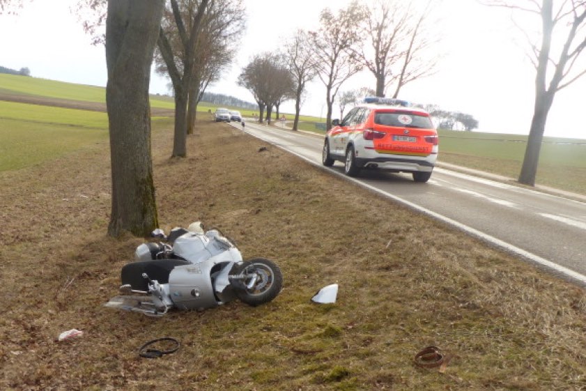 (ty) Schwere Verletzungen zog sich gestern gegen 12.30 Uhr ein 79-jähriger Roller-Fahrer zu. Der Biker aus dem Gemeindebereich Aresing befuhr zum Unfallzeitpunkt mit seinem Vespa-Roller die Staatsstraße 2050 von Unterweilenbach in Richtung Aresing. Bei geradem Straßenverlauf kam er, so teilt es die Schrobenhausener Polizei heute mit, aus bisher ungeklärter Ursache in den rechten Grünstreifen.