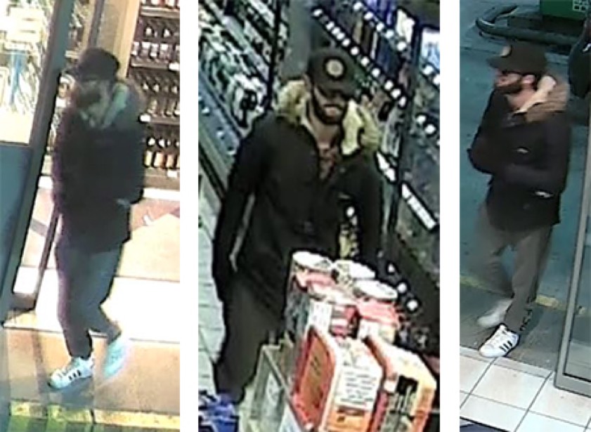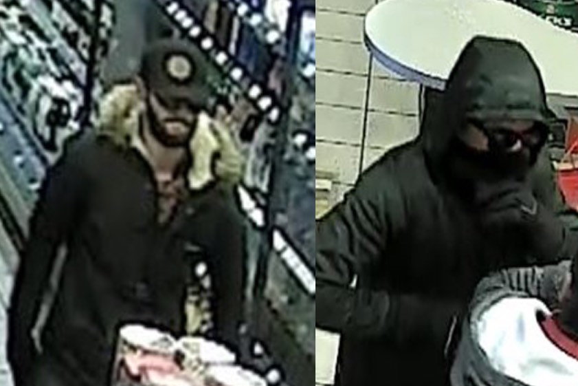 - Täter 1: Männlich, etwa 25 Jahre alt, zirka 180 Zentimeter groß, schlank, hellhäutig. Dunkle Sonnenbrille, schwarzer Vollbart, dunkles Baseball-Cap mit rundem hellbraunem Emblem. Bekleidet mit schwarzer Kapuzenjacke mit Fellkragen, grauer Jogginghose und weißen Adidas-Sportschuhen. Hatte ein Messer bei sich.