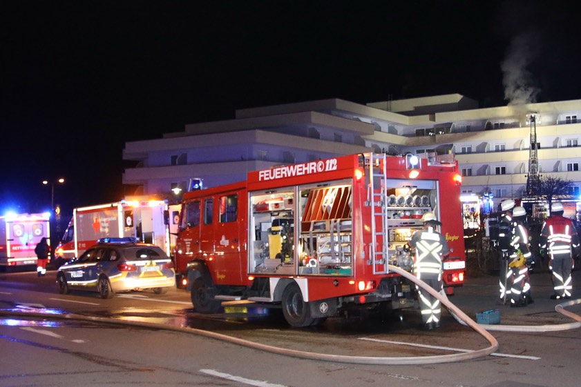 Beim Eintreffen der Einsatzkräfte stand die Ein-Zimmer-Wohnung bereits in Vollbrand. Die Inhaberin der Wohnung wurde durch das unmittelbare Brandgeschehen schwer verletzt, sie wurde in ein örtliches Krankenhaus gebracht. Zwei weitere Bewohner des Gebäudes mussten auf Grund einer Rauchgas-Vergiftung ebenfalls im Krankenhaus behandelt werden. Nach ersten Schätzungen liegt der Sach- und Gebäudeschaden im hohen fünfstelligen Euro-Bereich.