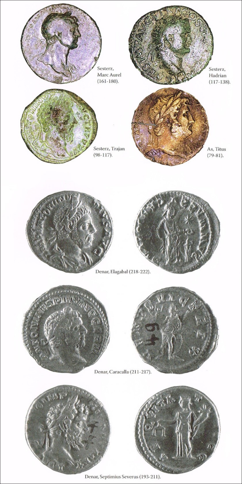 Aus den Vitrinen stahlen die Diebe außerdem – so heißt es weiter – rund 60 römische Münzen. Das ganz unten angehängte Bild, das von der Polizei heute veröffentlicht wurde, zeigt einige Beispiele solcher Münzen. Eine genaue Auflistung der erbeuteten Münzen werde derzeit erstellt. Der Wert der entwendeten Gegenstände einschließlich des angerichteten Sachschadens wird von den Gesetzeshütern momentan in einer Größenordnung von rund 20 000 Euro angesiedelt.