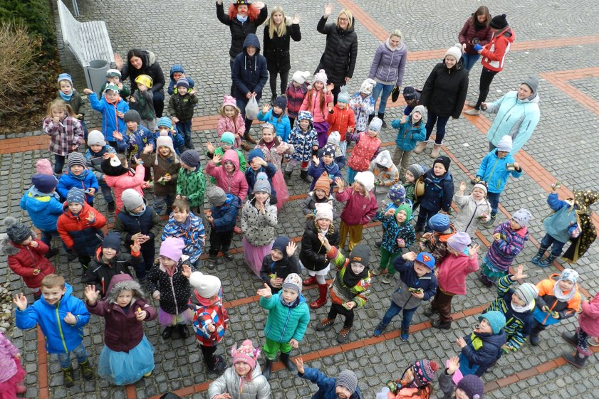 (ty) Die Nachwuchs-Maschkera aus dem Kindergarten von Reichertshausen haben heute – am "Rußigen Freitag" – das Verwaltungs-Personal im Rathaus besucht. Nach einem gelungenen Auftritt zum "Kinderzimmer-Tanz" gab es als Belohnung für die Buben und Mädchen dann einen wahren Bonbonregen aus dem Rathaus (siehe Fotos).