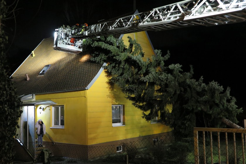 Um 19.30 Uhr wurde die Feuerwehr auf die Autobahn alarmiert, um Verkehrsschilder zu sichern. Im frisch eingerichteten Baustellen-Bereich zwischen Freising-Mitte und Erding hatte der Wind etliche mobile Verkehrszeichen umgeweht. Im weiteren Verlauf des Abends musste ein weiterer umgestürzter Baum beseitigt werden, der auf ein Einfamilienhaus an der Münchner Straße gestürzt war.
