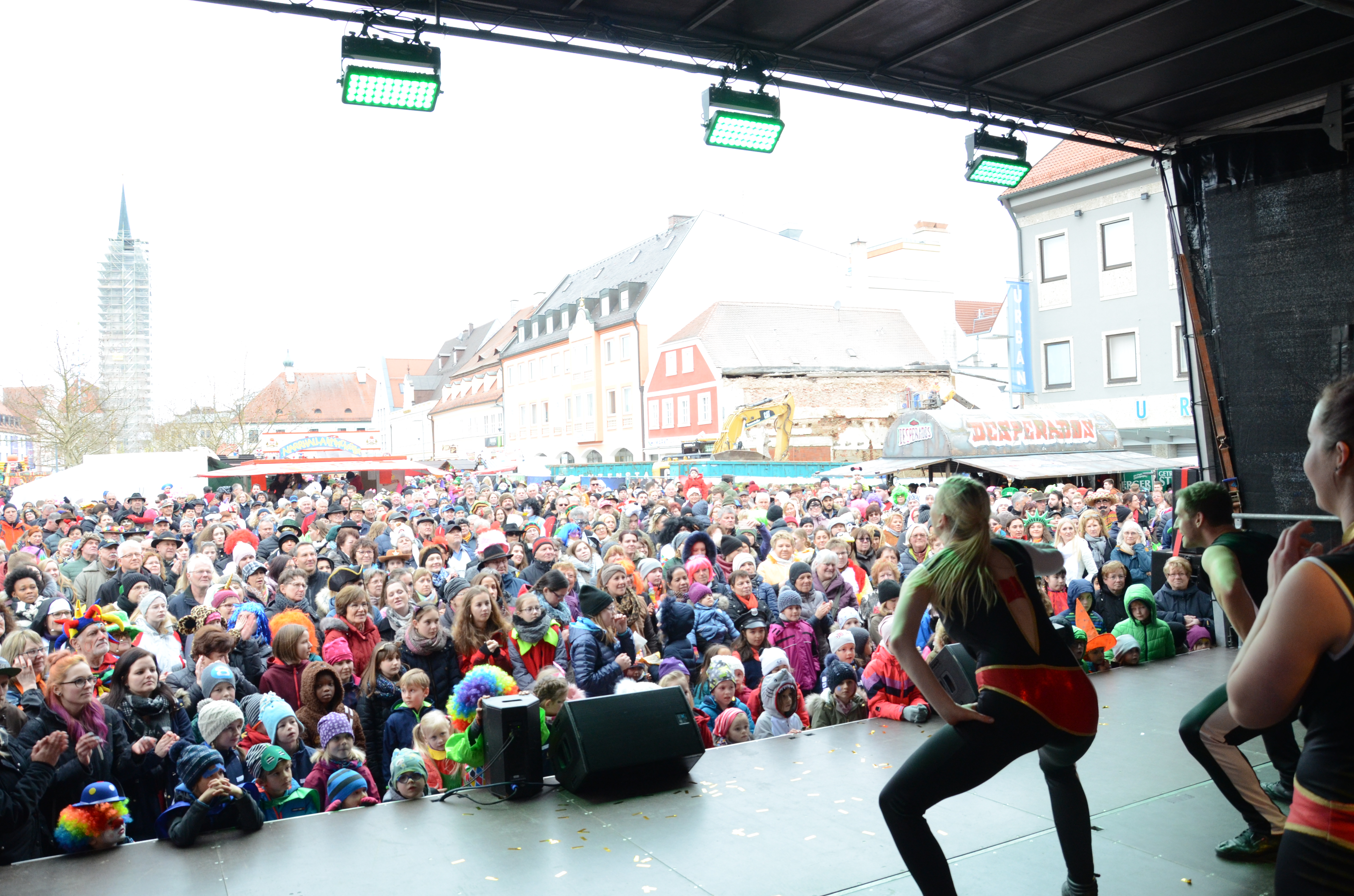 (ty) Jede Menge Maschkerer hatten am heutigen Nachmittag die Pfaffenhofener City wieder fest im närrischen Griff. Sie tummelten sich zum traditionellen Spektakel am Faschings-Dienstag auf dem Hauptplatz, machten Stimmung und verfolgten die Darbietungen auf den Bühnen. Tanzgruppen und Faschings-Garden aus der Umgebung zeigten ihre aktuellen Choreografien und Show-Einlagen. Das bunte Treiben auf dem Hauptplatz endet um 18.30 Uhr, dann ist zumindest hier Schluss – doch in den Kneipen und Bars wird sicher noch weitergefeiert, bis um Mitternacht diese Faschings-Saison zu Ende ist.