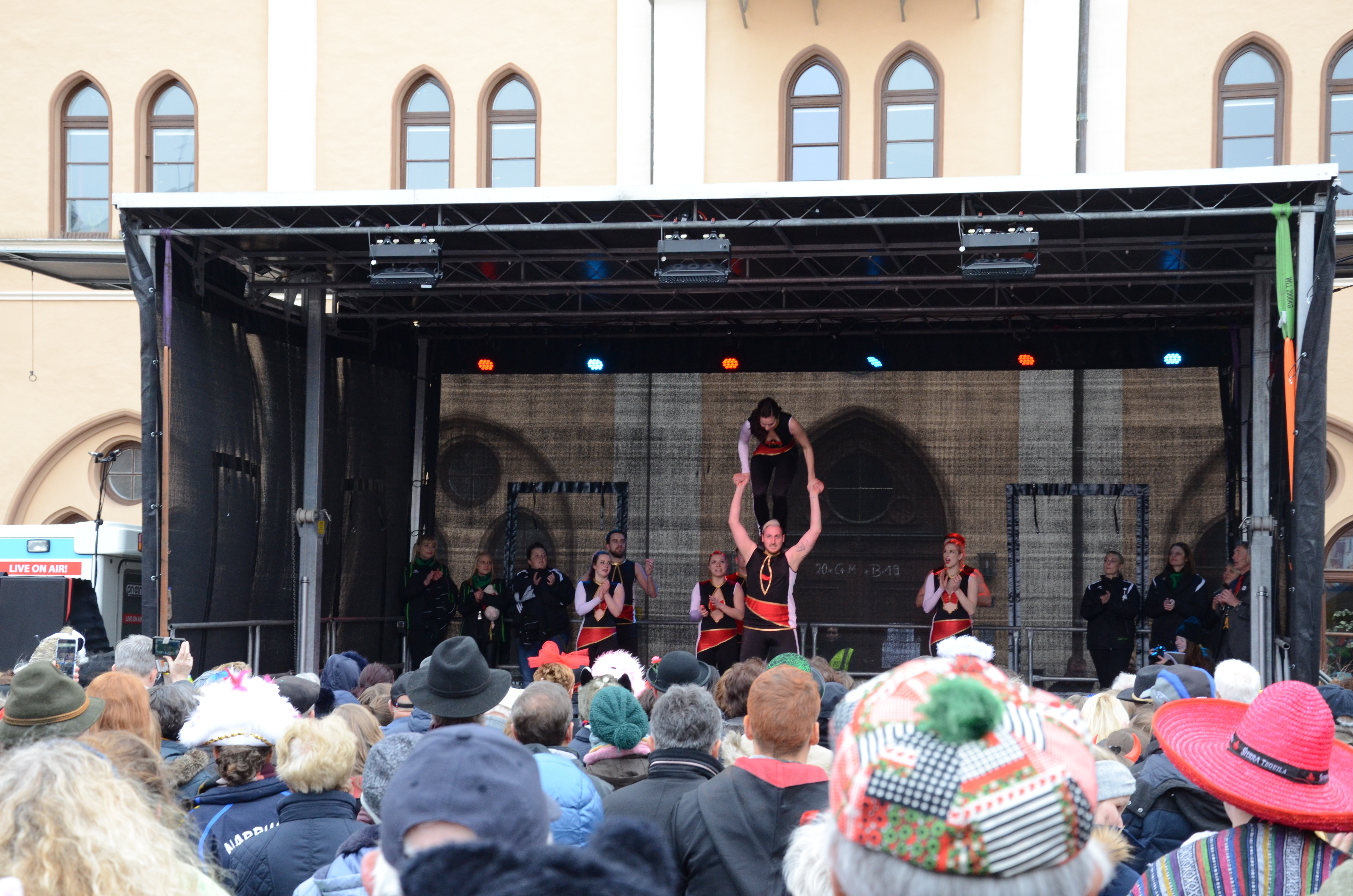 Zwischen 13 und 16 Uhr war auf der Bühne vor dem Rathaus einiges geboten. Sowohl die Kindergarden als auch die Großen mit ihren Prinzengarden – unter anderem aus Ilmmünster, Steinkirchen und Geisenfeld – unterhielten die Massen mit zum Teil Aufsehen erregenden Akrobatik- und Tanz-Programmen. Auf der zweiten Bühne, in der Nähe des Marienbrunnens, gab es wieder Tanz-Auftritte von "Dance on Stage" und "Watch us move" sowie der "Shadow Dancer". Wir waren mit dem Fotoapparat auf Streifzug und haben zahlreiche Impressionen von der Faschings-Gaudi in der Kreisstadt eingefangen.