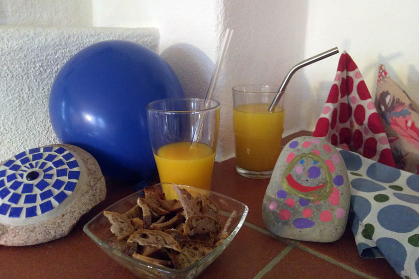 Statt einer Einweg-Papiergirlande zaubert Kufer ihre langlebige Stoff-Wimpel-Kette aus dem Schrank. Sie betont: „Wenn die Kinder für eine Kindergeburtstagsparty nach Luftballons fragen, kaufen wir keine 100er Packung mit 100 Prozent Kunststoff-Ballons, sondern lieber wenige aus fair gehandeltem Naturlatex.“ Als Knabbereien, die natürlich auch zu einer Party gehören, werden bei Familie Kufer gerne Brotchips aus altbackenem Brot, Semmeln oder Brezen gemacht.
