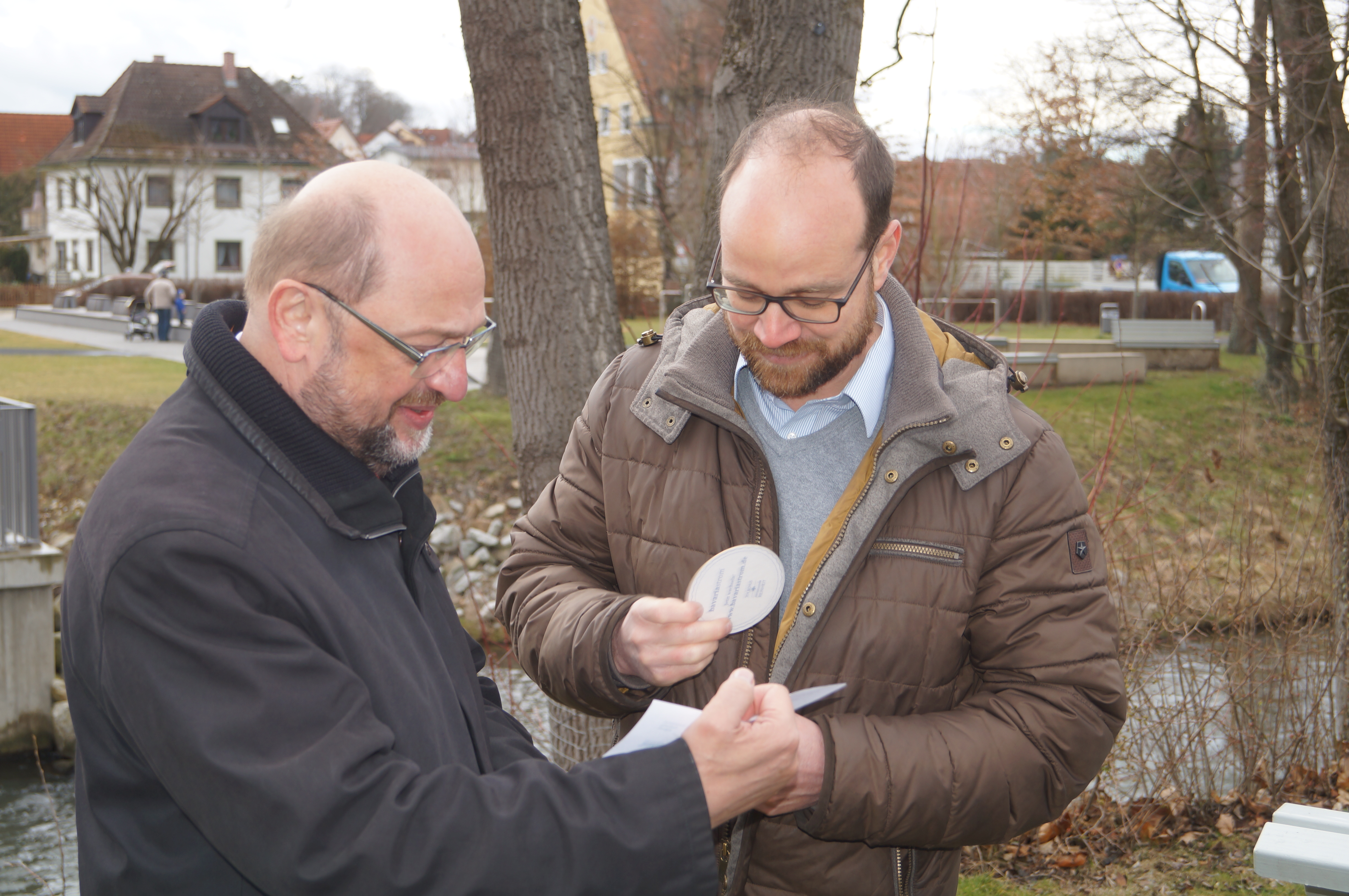 Der neue Bürgerpark von Pfaffenhofen und das historische Kloster von Scheyern. Eigentlich waren es nur zwei Locations, die SPD-Politiker Martin Schulz heute bei seinem Besuch in der Region kennengelernt hat. Dahinter steckte aber viel mehr, das Programm war von großer Symbolik geprägt. So ist der ehemalige Präsident des Europa-Parlaments jetzt Inhaber eines Anteils-Scheins der lokalen Bürgerenergie-Genossenschaft, hat mit drei Leuten vom Pfaffenhofener Jugend-Parlament einen Baum gepflanzt, weiß nun noch mehr über die Geschichte der Benediktiner und Wittelsbacher – und ließ zu guter Letzt eine weiße Friedenstaube fliegen. "Europa ist die Antwort!" – unter diesem Motto war seine Visite in der Hallertau von den Sozialdemokraten angekündigt worden.