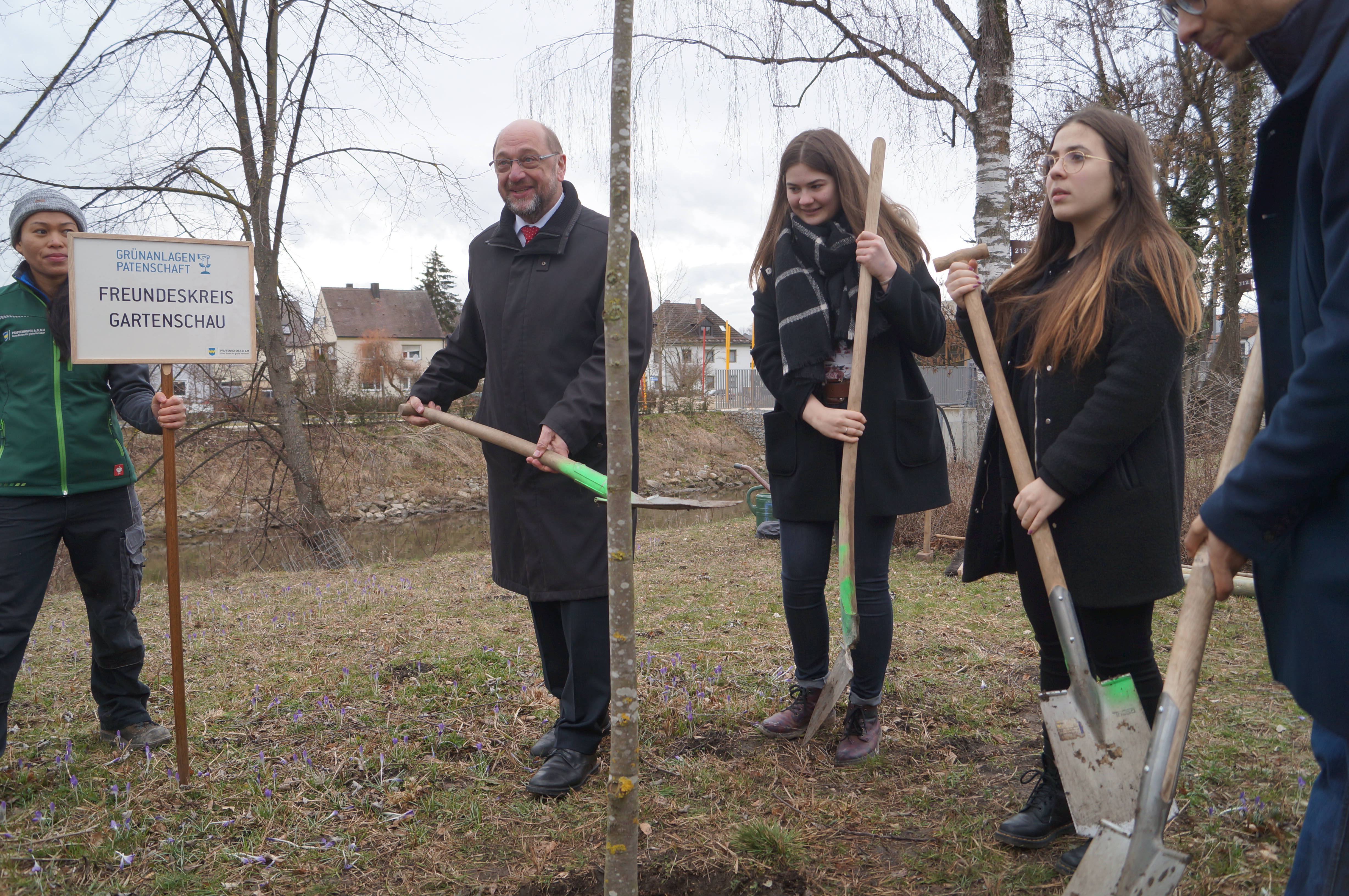 Zusammen mit den Vertretern des Jugend-Parlaments und dem Freundeskreis Gartenschau pflanzte Schulz dann bestens gelaunt ("Der Schulz arbeitet, eine Sensation") einen Baum. Genauer gesagt: eine Silber-Linde, wie Mario Dietrich, der Obergärtner bei den Pfaffenhofener Stadtwerken, erklärte. "Im Zuge des Klimawandels wird der Sommer trockener. Die Silber-Linde kommt damit gut zurecht, außerdem ist sie ein Bienenweide-Baum." Aber nicht nur durch diese Pflanz-Aktion ist Schulz nun quasi in Pfaffenhofen verwurzelt.