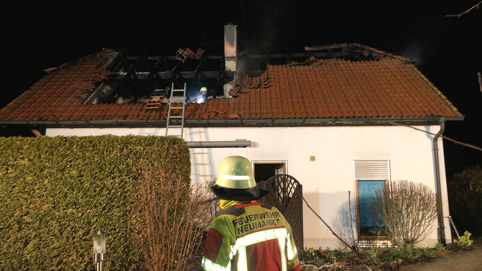 Gegen 19.30 Uhr ging bei der Integrierten Leitstelle Regensburg ein Notruf über einen Dachstuhlbrand in Deining ein. Von der Integrierten Leitstelle wurden die Feuerwehren Neumarkt, Deining, Leutenbach und Unterbuchfeld sowie der Rettungsdienst alarmiert. "Beim Eintreffen der Einsatzkräfte brannte der Dachstuhl des Einfamilienhauses bereits komplett", heißt es heute von Seiten der Beamten.