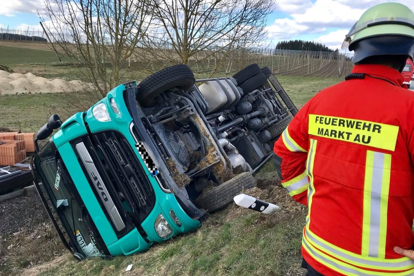 Neben den Feuerwehren aus Au, Rudertshausen und Geroldshausen waren der Rettungsdienst und die Polizei zur Unfallstelle alarmiert worden. Die Floriansjünger sicherten ab und kümmerten sich darum, dass keine Betriebsstoffe auslaufen. Die Bergung des Lkw musste mit Hilfe eines Krans erfolgen. Wegen der aufwändigen Maßnahmen war die Straße in diesem Bereich bis etwa 16.45 Uhr gesperrt. "Verletzt wurde niemand, der Sachschaden wird auf über 10 000 Euro geschätzt", so ein Polizei-Sprecher.