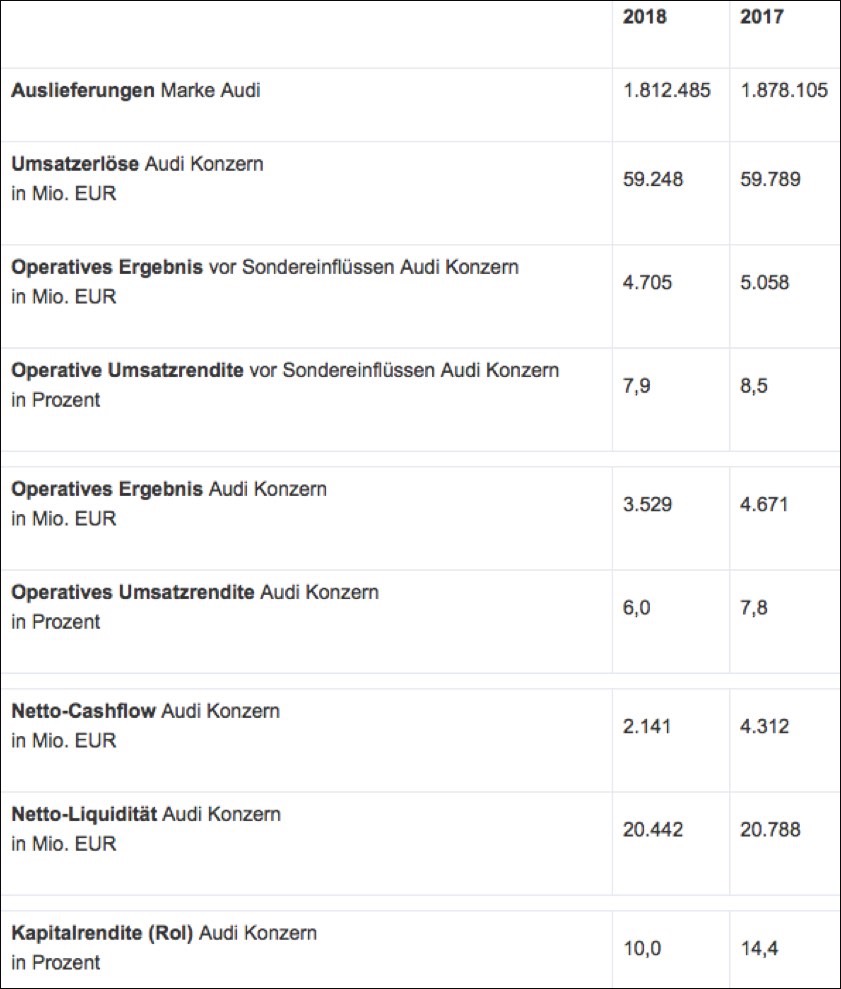 Diese Kennzahlen gab Audi heute unter anderem bekannt: