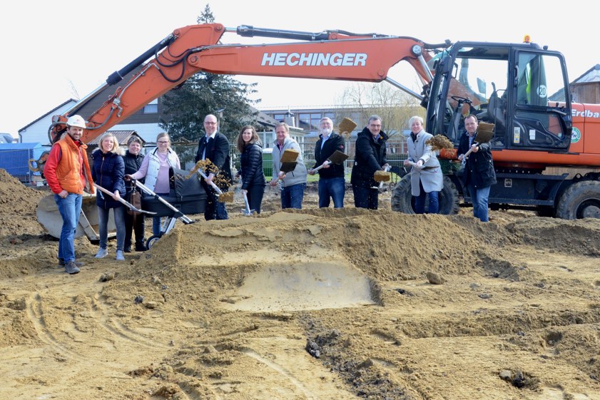 (zel) Für gut 3,5 Millionen Euro errichten die Gemeinden Ilmmünster und Hettenshausen auf dem Areal des ehemaligen Bauhofs von Ilmmünster ein gemeinsames neues Kinderhaus. Am heutigen Vormittag erfolgte dazu der symbolische Spatenstich, die Fertigstellung ist nach den Worten von Architektin Rita Obereisenbuchner und Projekt-Leiterin Marianne Kolbitsch für den Mai kommenden Jahres geplant.