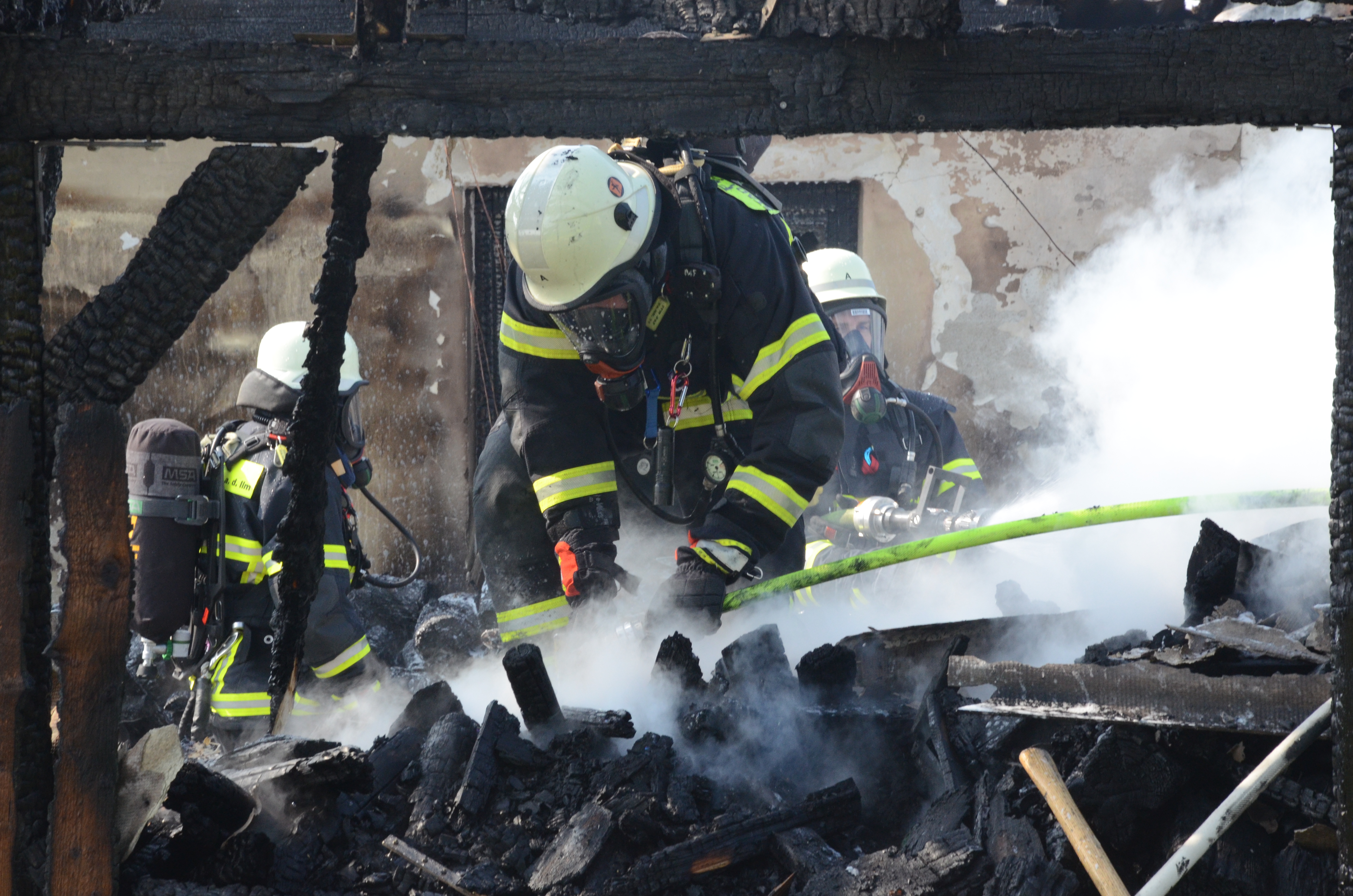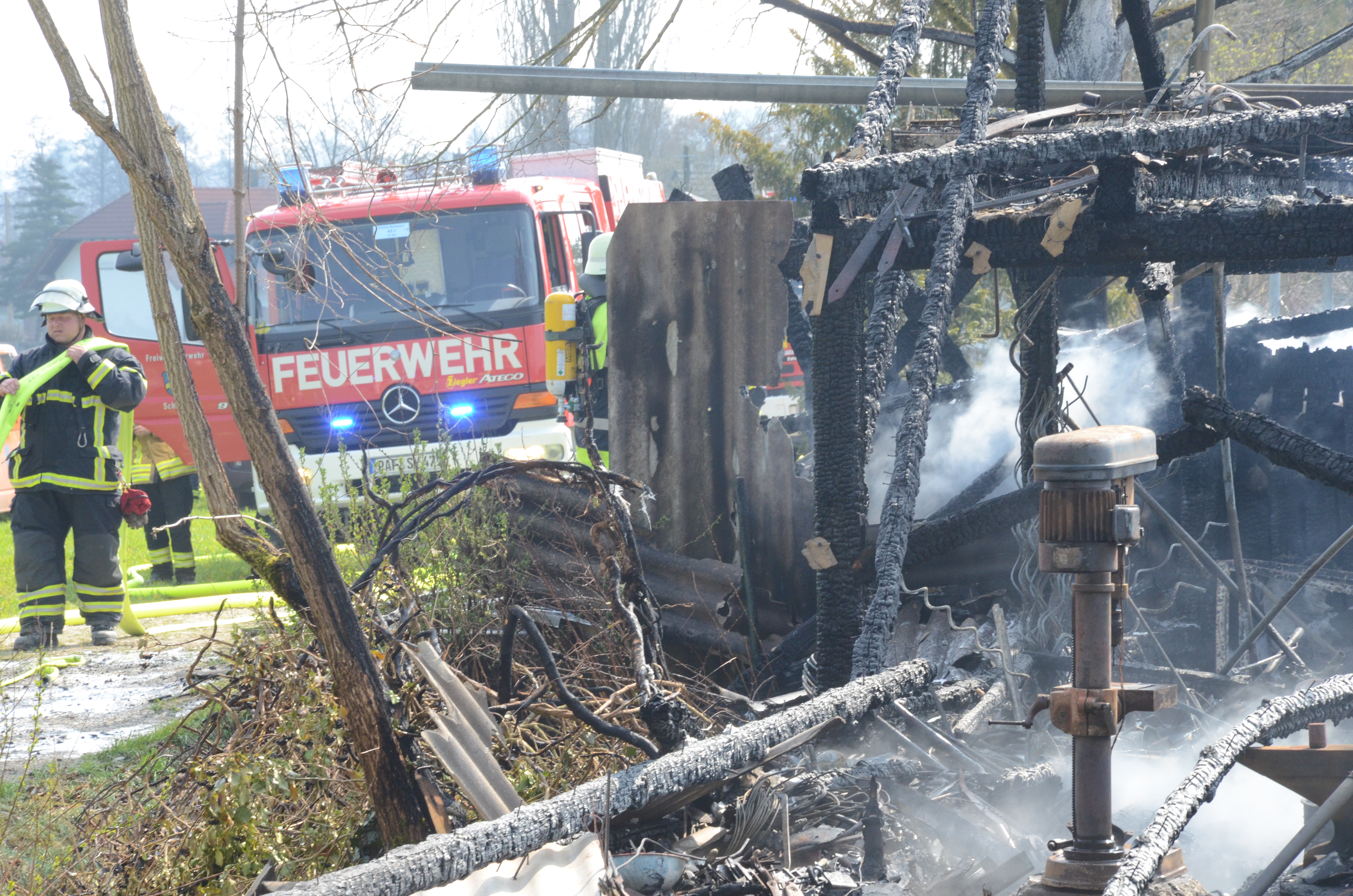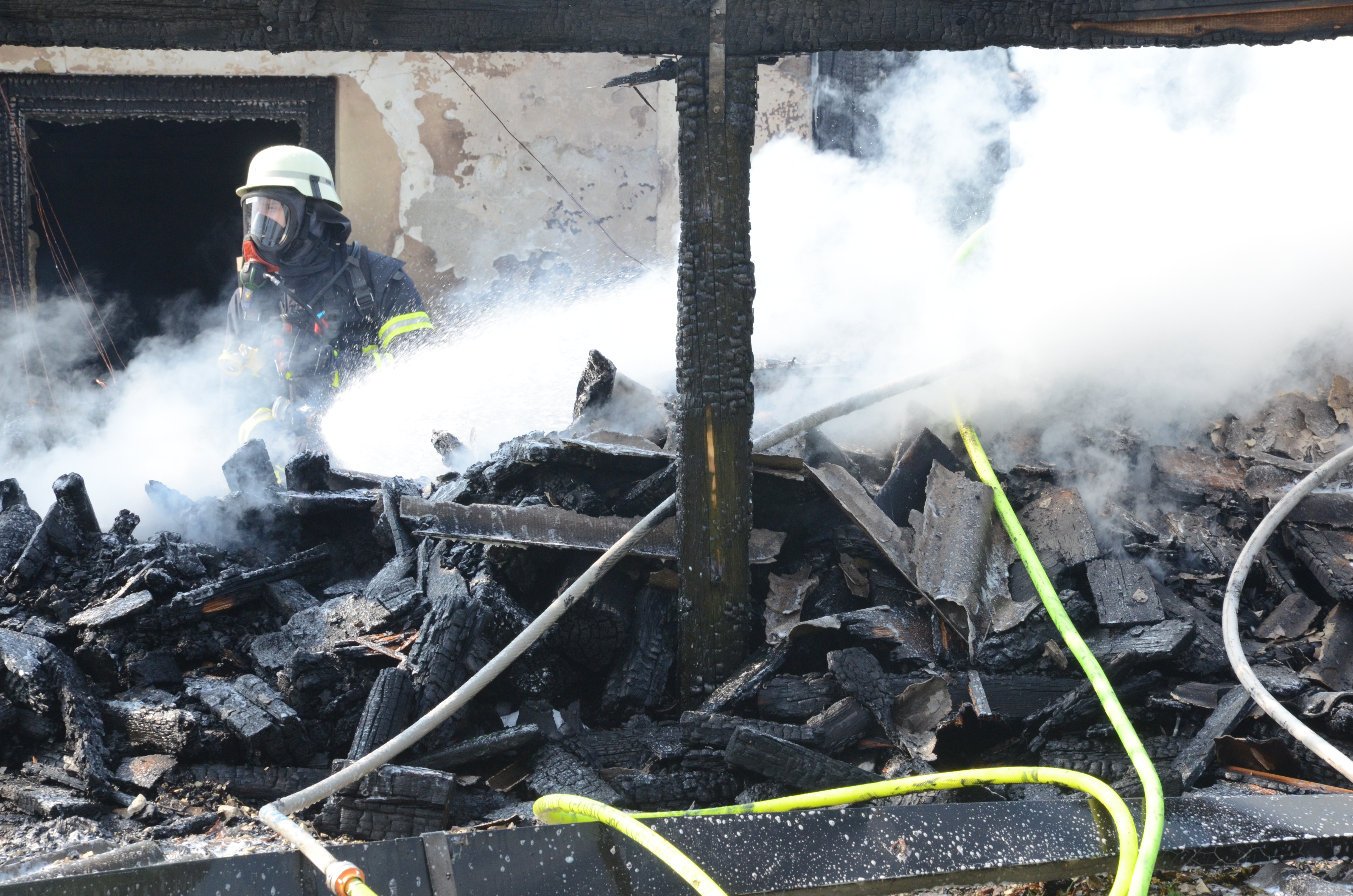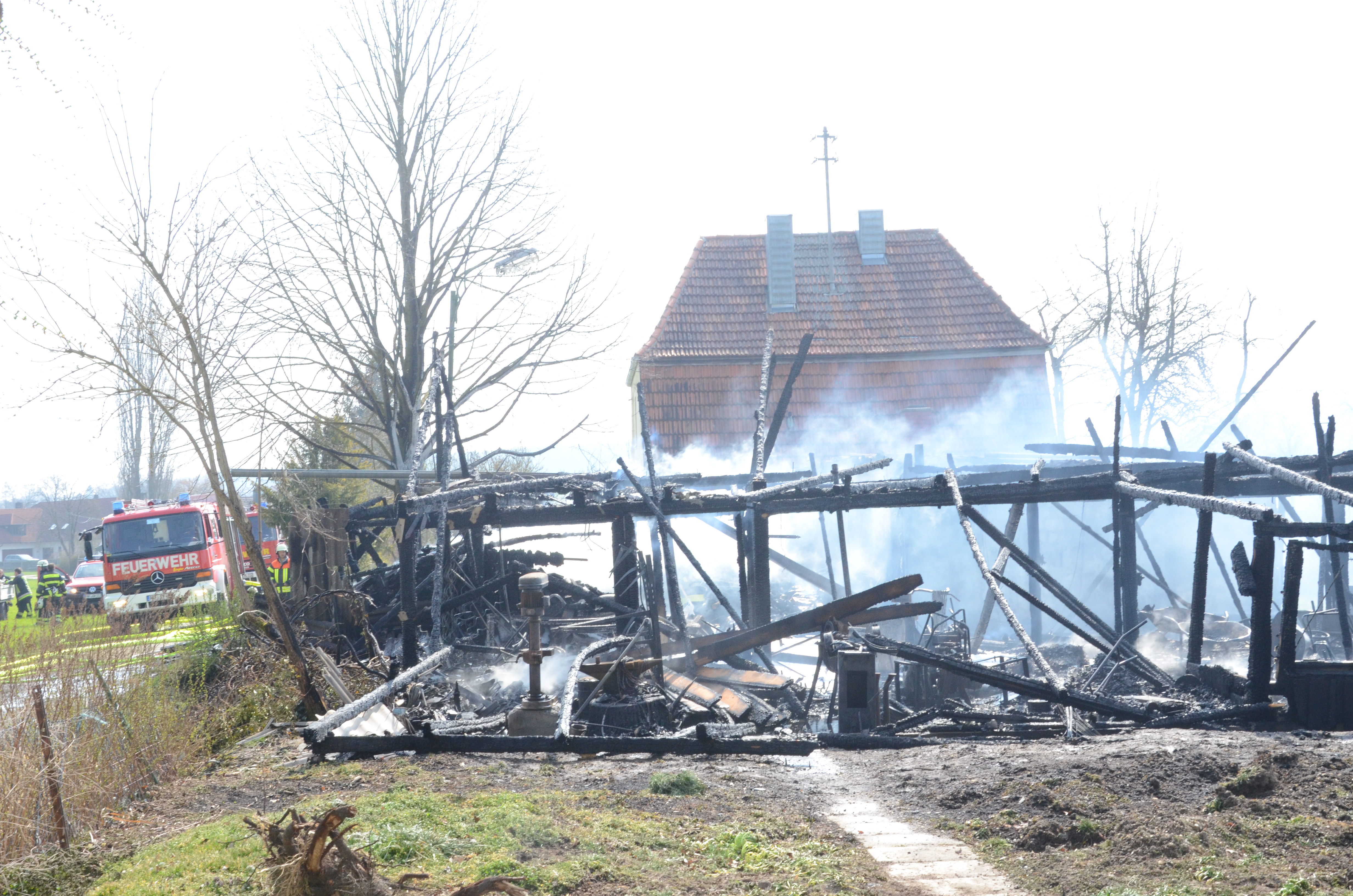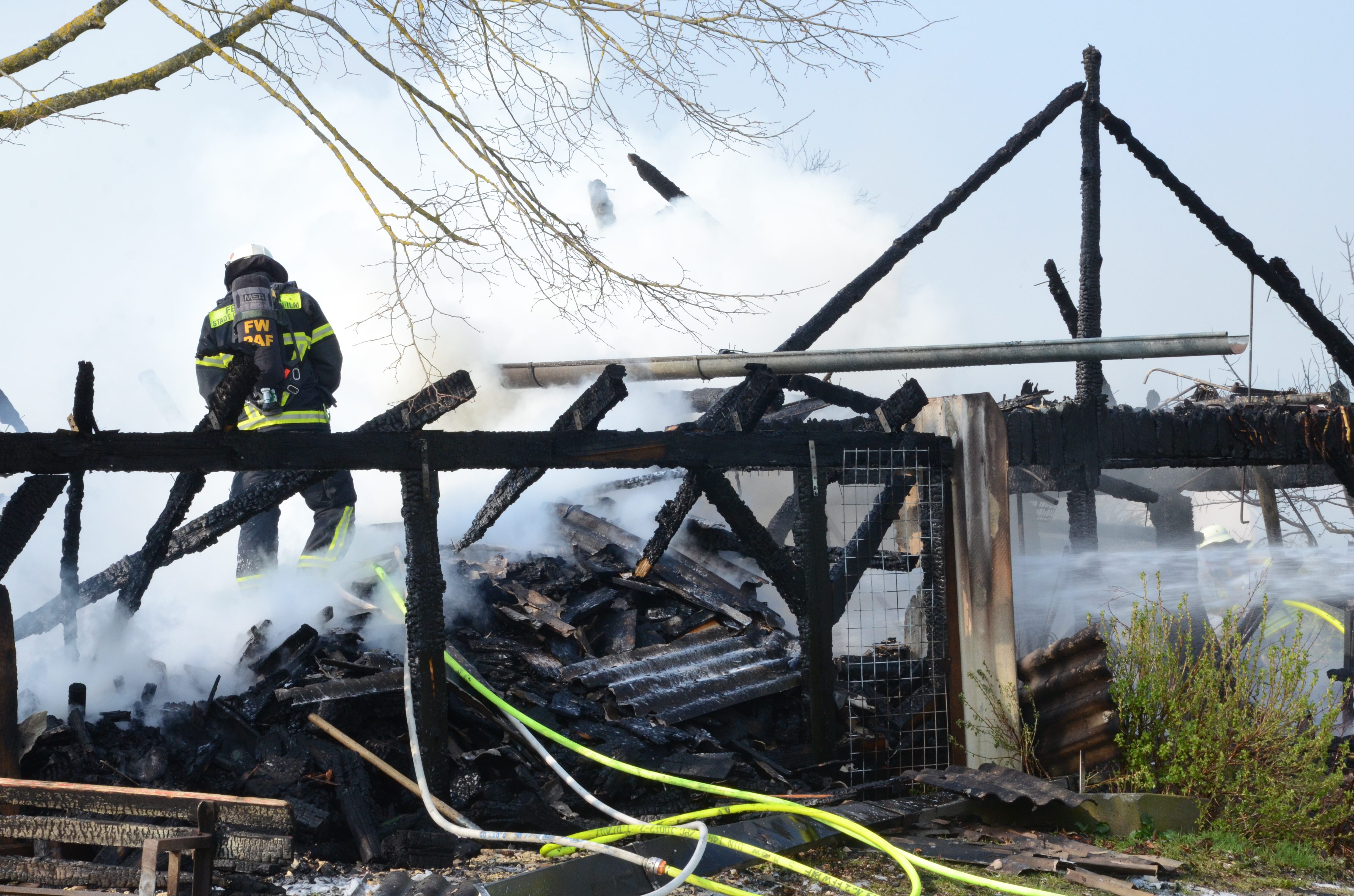 Feuerwehr-Einsatz am heutigen Vormittag. Vermutlich übernimmt die Kripo die Ermittlungen zur Ursache des Brandes.