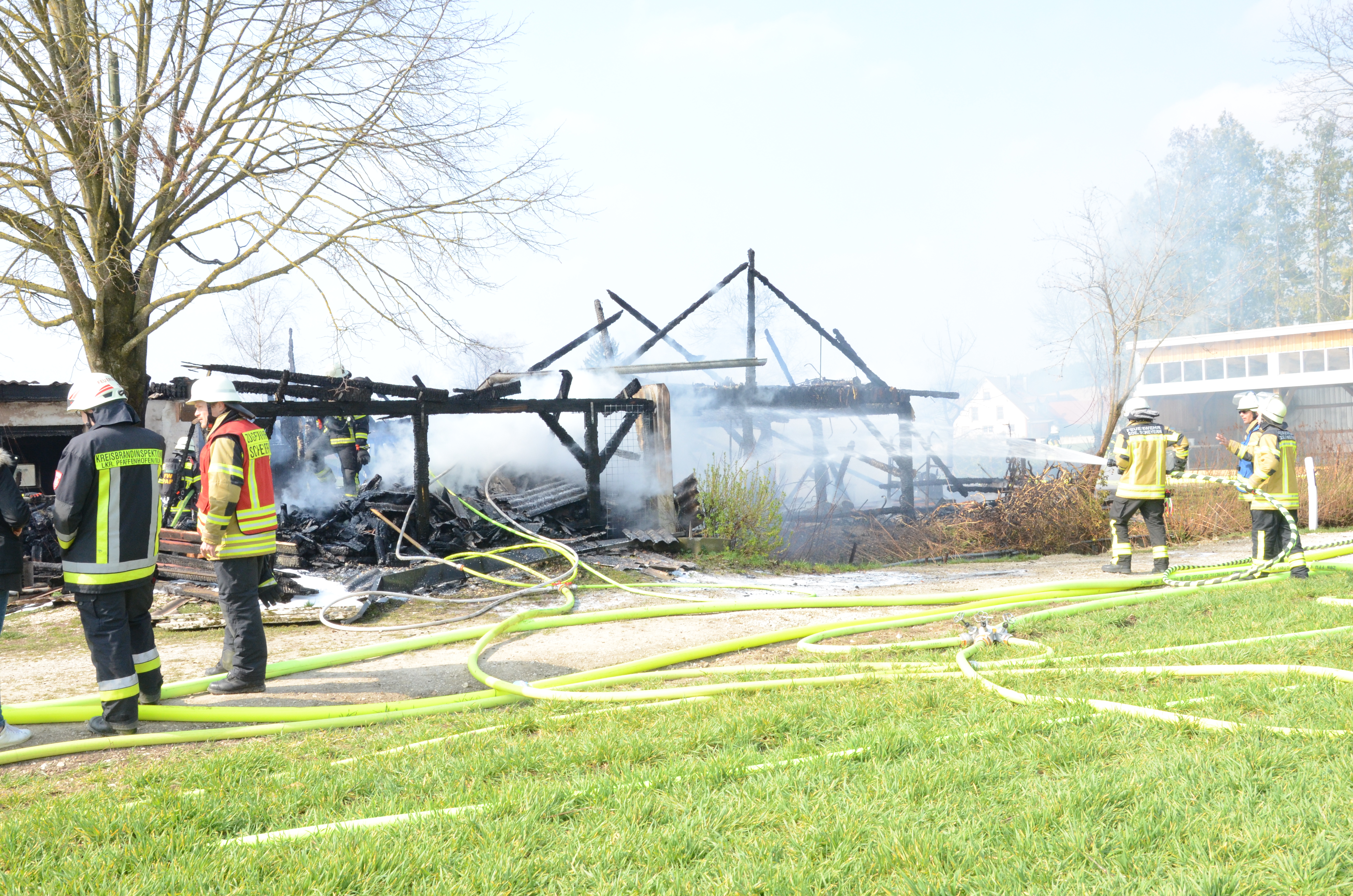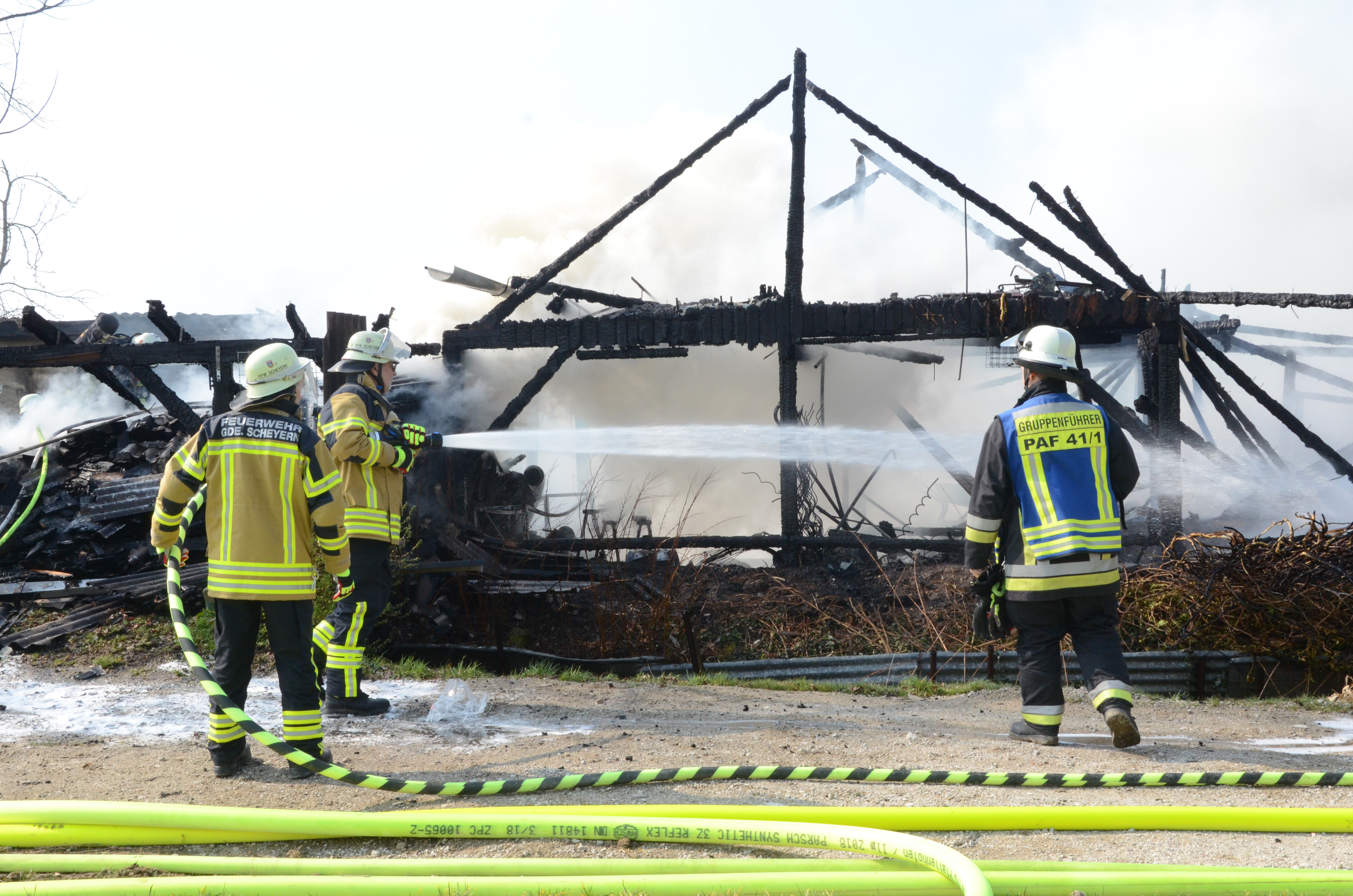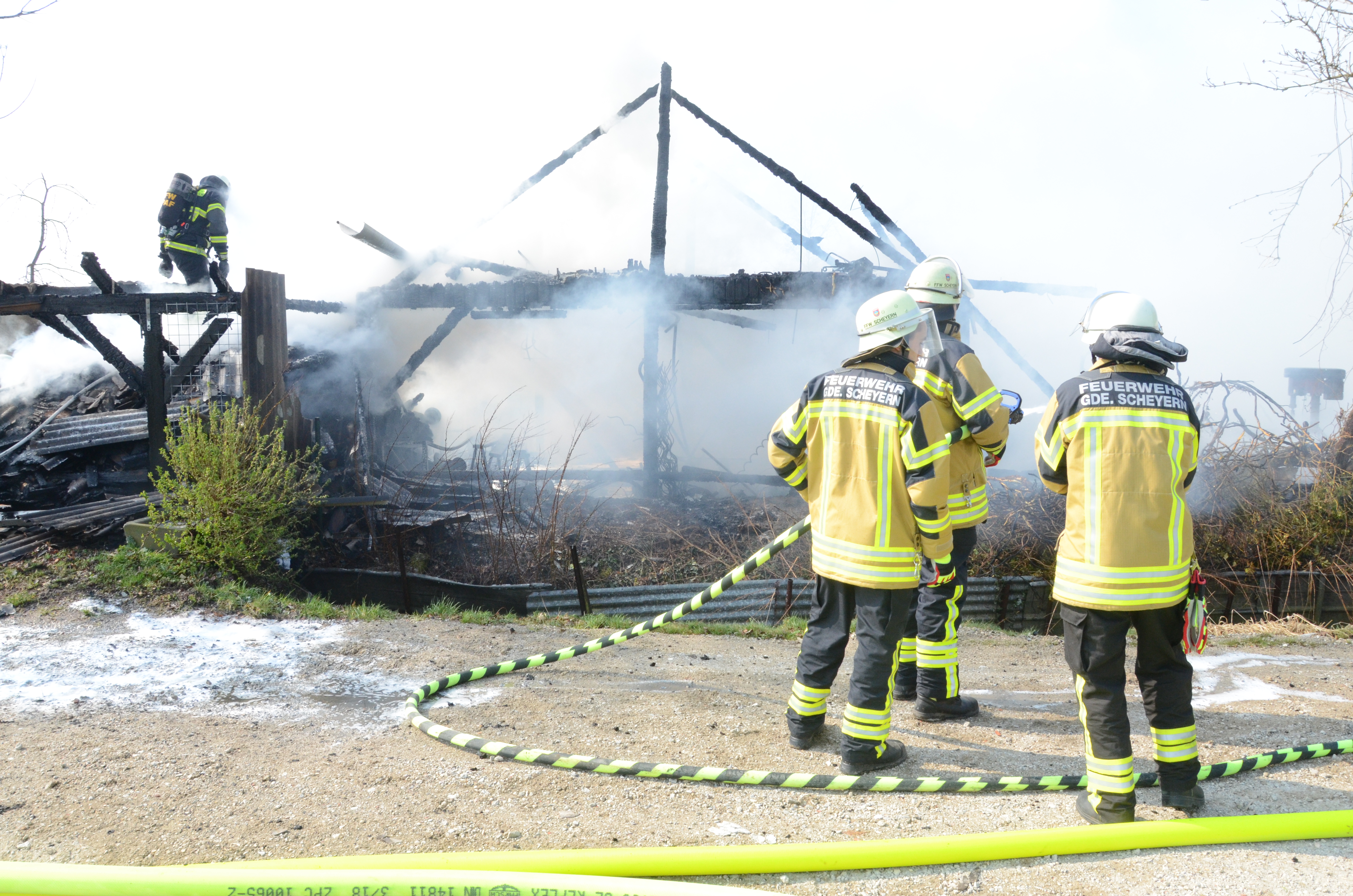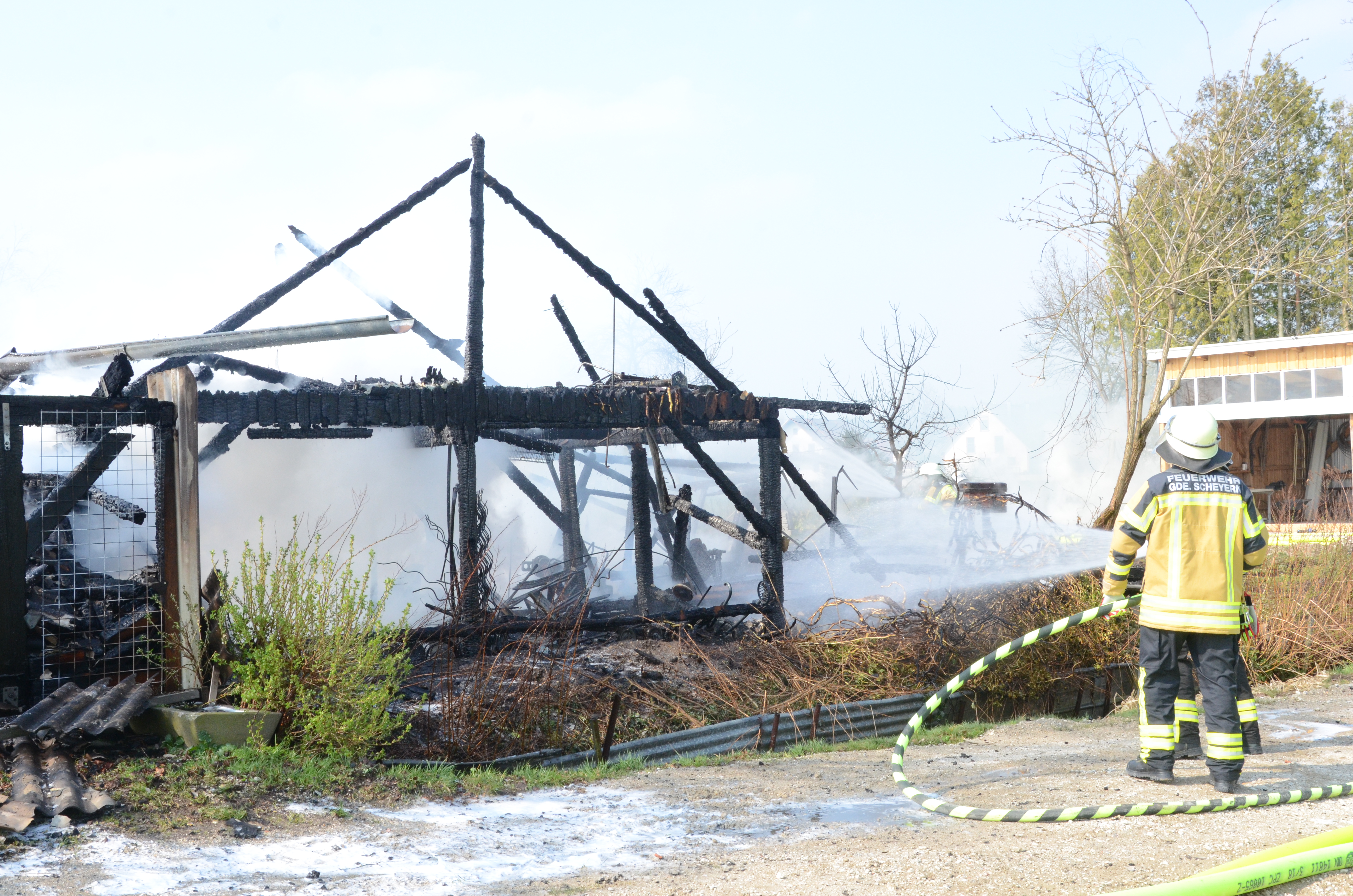 Wie ein Reporter unserer Zeitung vor Ort in Erfahrung bringen konnte, war die Mitteilung über den Brand gegen 10.15 Uhr bei der zuständigen Polizeiinspektion Pfaffenhofen eingegangen. Der Einsatzort liegt an der Schneidgasse zwischen Mitterscheyern und Niederscheyern. Das Anwesen, zu dem auch ein älteres Wohnhaus und ein größerer Unterstand gehören, ist dem Vernehmen nach seit einiger Zeit unbewohnt.