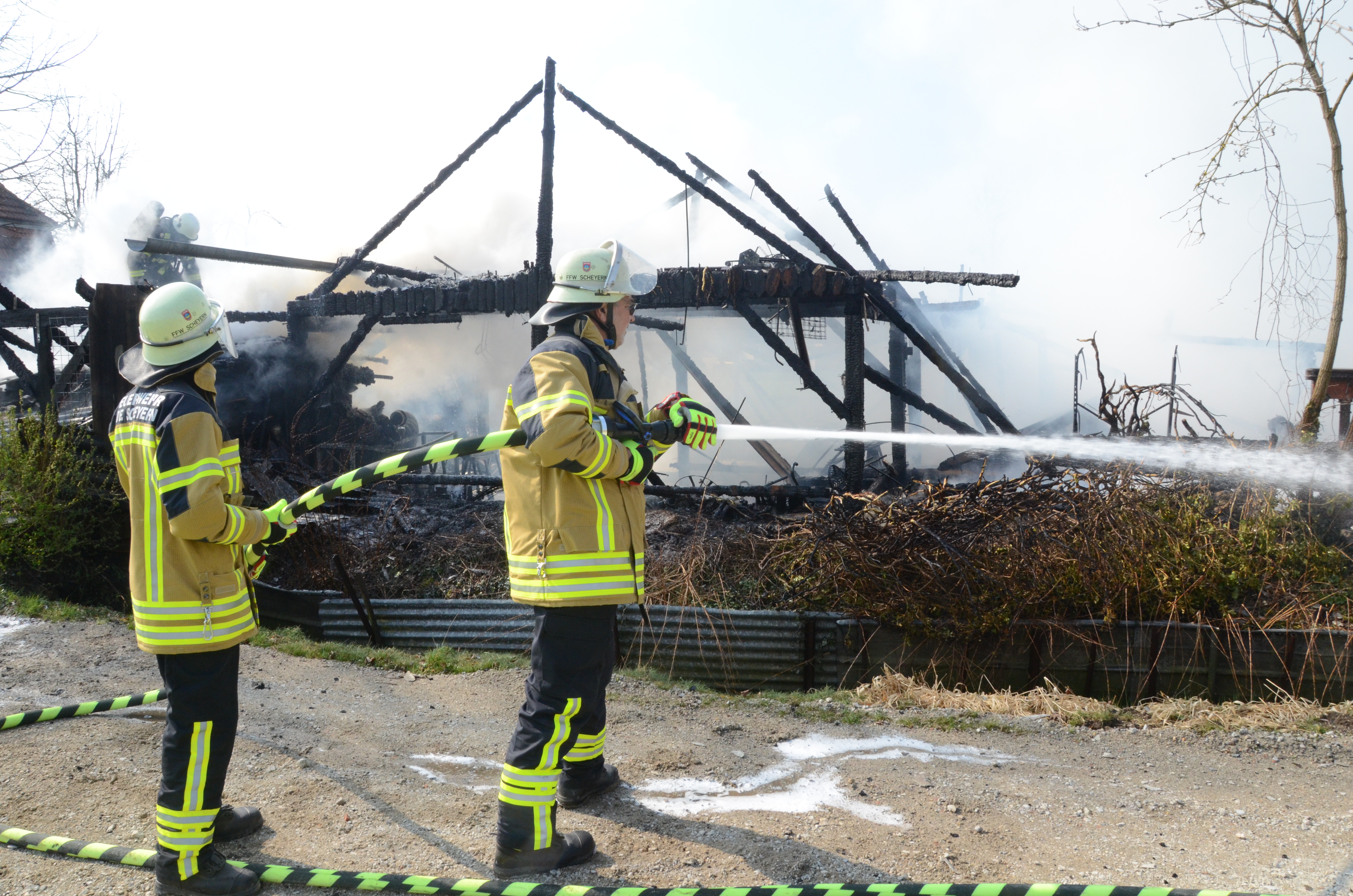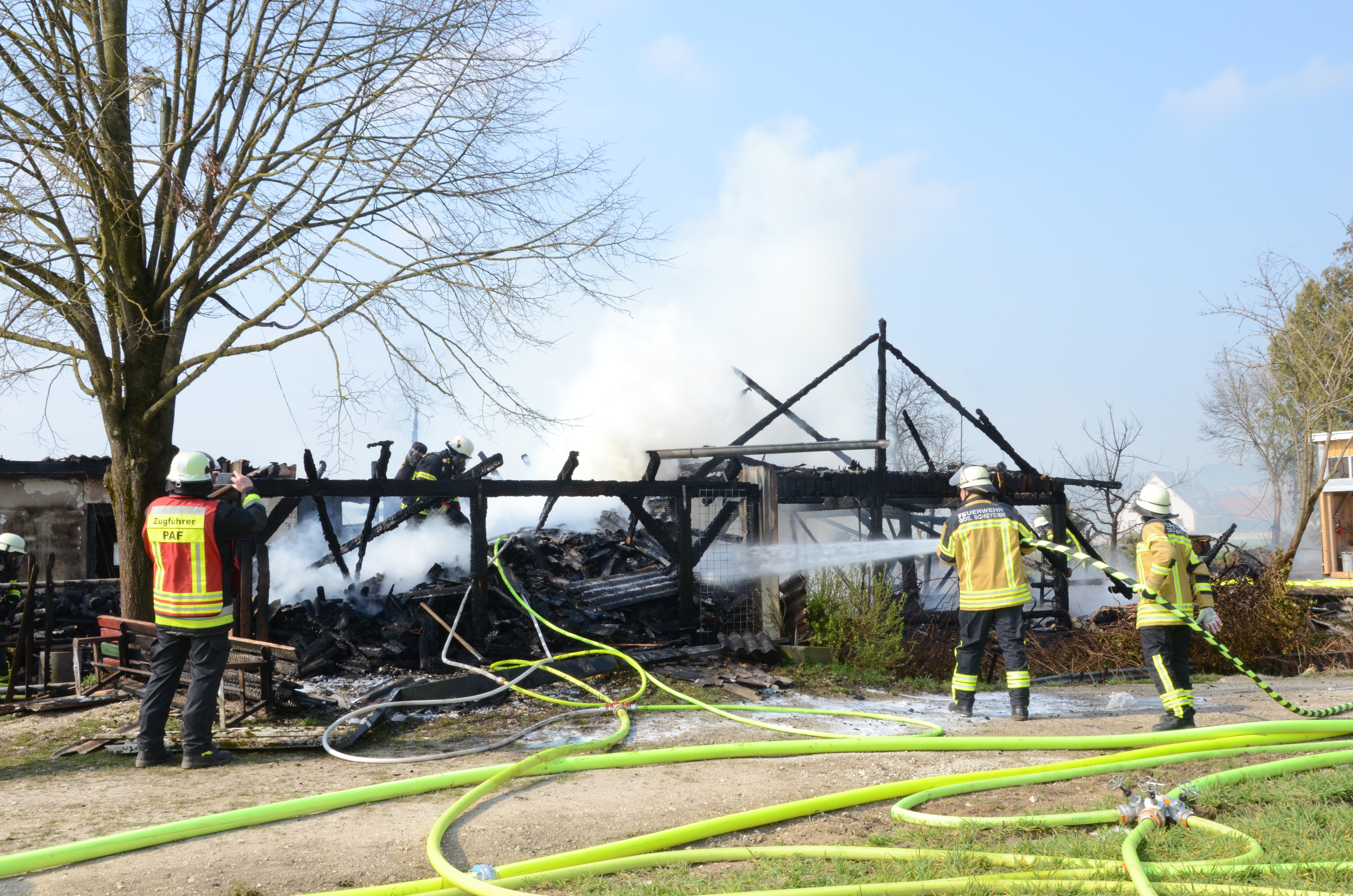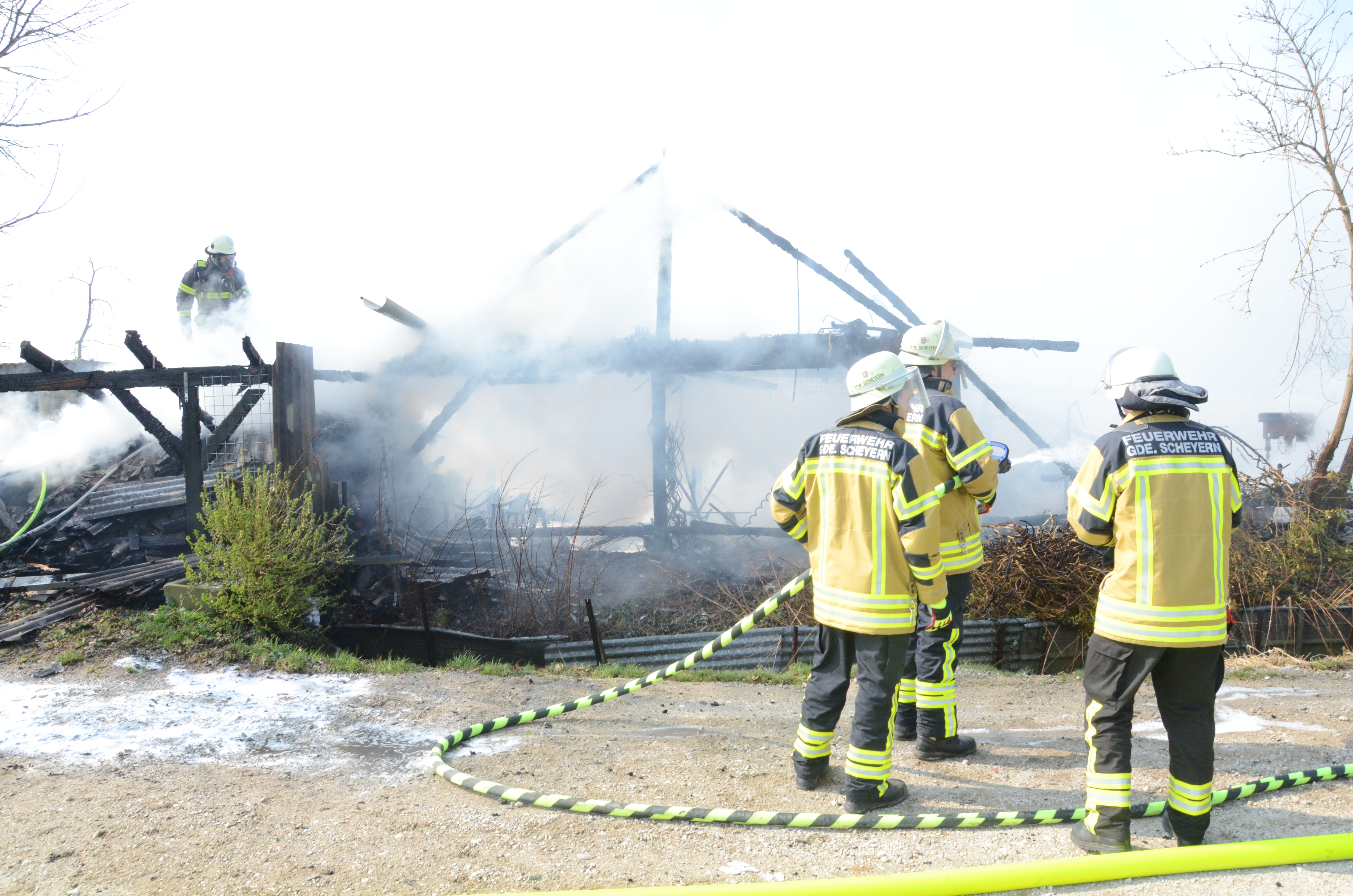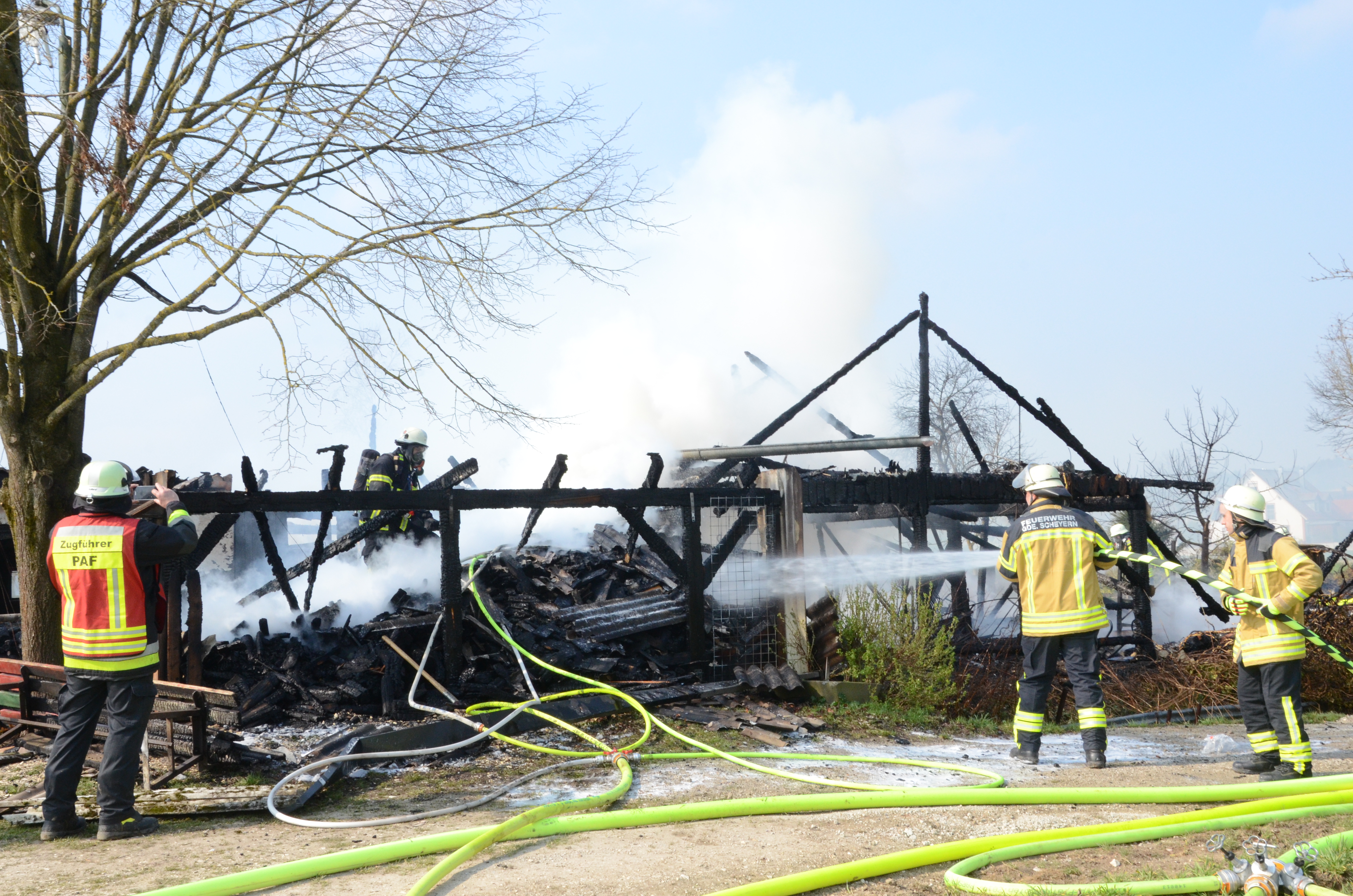 Wie ein Reporter unserer Zeitung vor Ort in Erfahrung bringen konnte, war die Mitteilung über den Brand gegen 10.15 Uhr bei der zuständigen Polizeiinspektion Pfaffenhofen eingegangen. Der Einsatzort liegt an der Schneidgasse zwischen Mitterscheyern und Niederscheyern. Das Anwesen, zu dem auch ein älteres Wohnhaus und ein größerer Unterstand gehören, ist dem Vernehmen nach seit einiger Zeit unbewohnt.