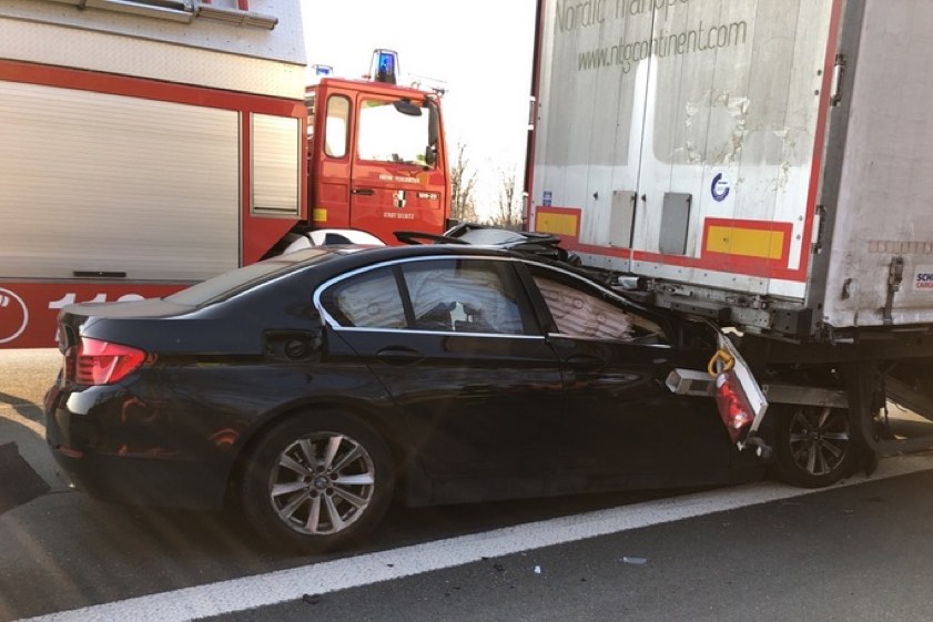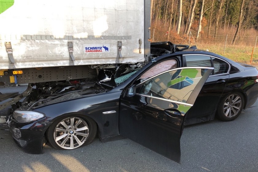 Gegen 7.10 Uhr war der Pole in seinem Auto allein in südlicher Richtung unterwegs und scherte gerade zum Überholen eines Lastwagens aus. Im letzten Moment erkannte er ein von hinten sich schnell näherndes Auto und brach sein Überholmanöver ab, indem er ruckartig wieder auf den rechten Fahrstreifen zog. Dort befand sich jedoch der Sattelzug eines 46-jähriger Rumänen, der mit etwa 85 km/h unterwegs war.