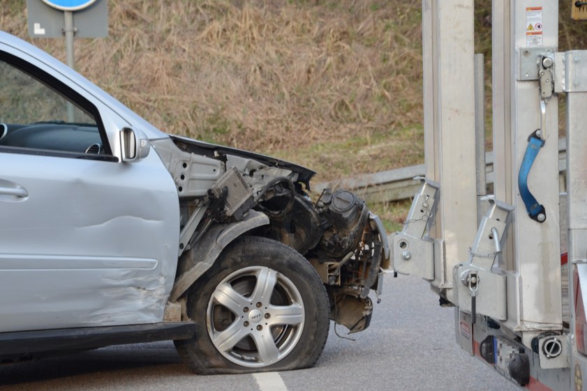 SUV-Fahrer missachtete beim Links-Abbiegen die Vorfahrt, der Wagen kollidierte mit seinem Kleintransporter samt Anhänger.