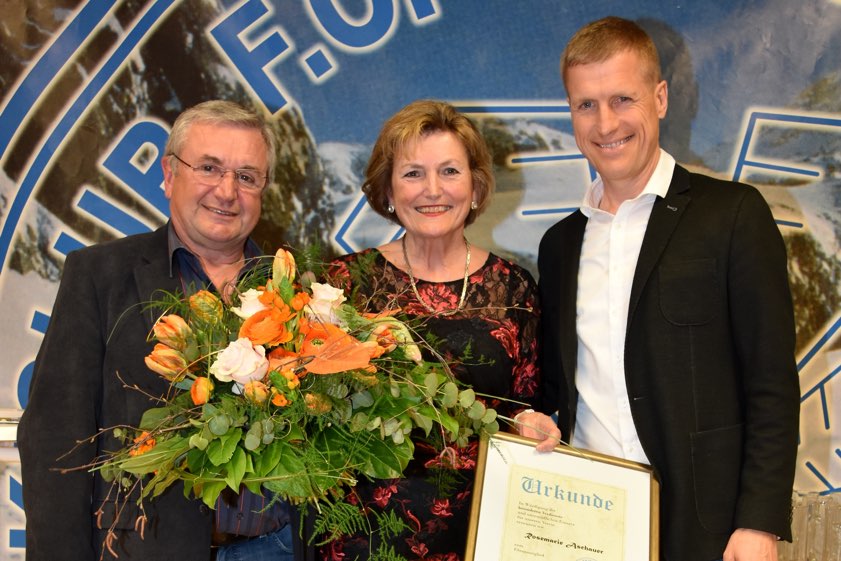Im Anschluss galt es noch jemanden aus den Reihen der Mitglieder besonders zu ehren. Rosemarie Aschauer (Foto oben), die über 22 Jahre das Amt der Schriftführerin bekleidet hatte, wurde mit einem Strauß Blumen bedacht und zum Ehrenmitglied des Skiclubs ernannt.