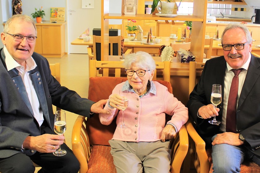 Seit dem Jahr 1997 besucht Katharina Wenig die Seniorentagesstätte "T-ENE" bei Regens-Wagner in Hohenwart und nimmt mit Freude an den angebotenen Aktivitäten teil. Die rüstige Seniorin besucht täglich die Schwestern des Konvents, liest gerne und schaut sich mit großer Begeisterung Tier-Dokumentationen im Fernsehen an. Zum Geburtstag gratulierten Bürgermeister Manfred Russer (CSU) im Namen der Gemeinde sowie der Dritte Landrat Josef Finkenzeller (FW) im Namen des Kreises Pfaffenhofen.