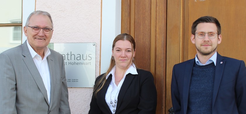 (ty) Die Gemeinde-Verwaltung von Hohenwart hat Verstärkung bekommen. Sabine Trübenbach (Foto), so heißt die neue Mitarbeiterin im Rathaus. Seit Beginn dieses Monats ist sie im Sachgebiet "Rentenangelegenheiten" sowie außerdem für die Geschäftsleitung tätig. Bürgermeister Manfred Russer (links) und Geschäftsleiter Felix Kluck begrüßten die neue Kollegin im Namen der Kommune.