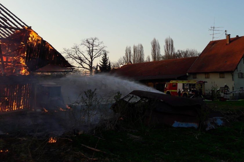 Nach Angaben der Polizei ist gegen 19.10 Uhr von einer Spaziergängerin der Brand einer Scheune auf einem leerstehenden Gehöft an der Münchner Straße – auf Höhe der Parzivalstraße – in Karlsfeld gemeldet worden. Im Einsatz waren daraufhin unter anderem Einsatzkräfte von den Feuerwehren aus Dachau und Karlsfeld sowie vom Technischen Hilfswerk aus Dachau (THW). "Die Scheune, in der mehrere Anhänger untergestellt waren, brannte komplett nieder", so ein Polizei-Sprecher.