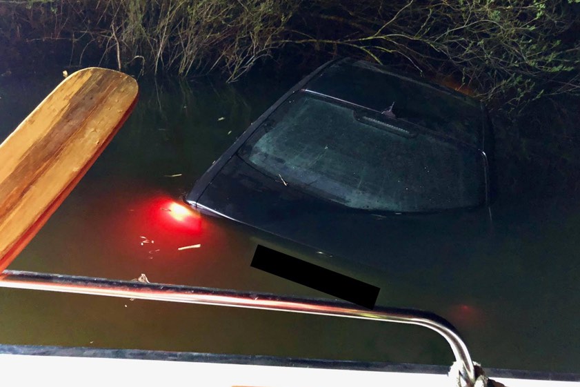 Angeblich wich der 19-jährige Fahrer einem Tier aus. Die drei Pkw-Insassen konnten sich unverletzt ans Ufer retten.