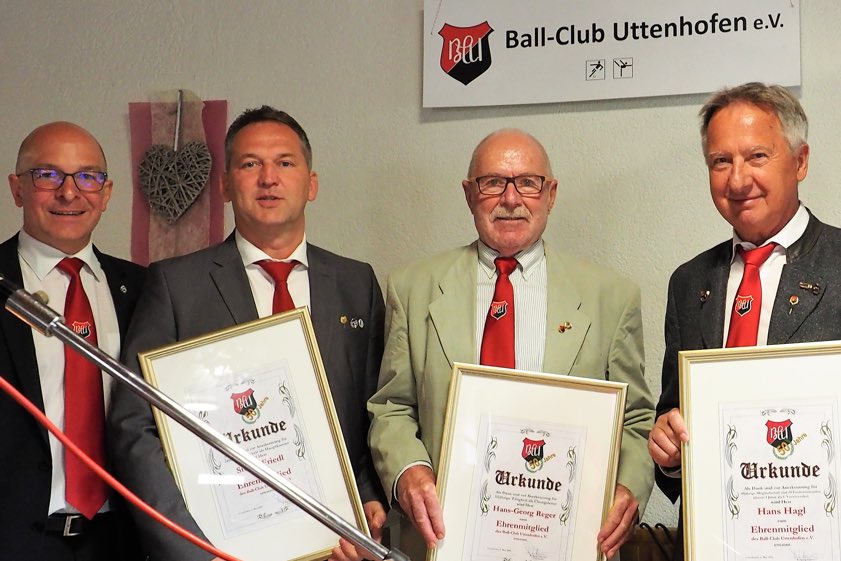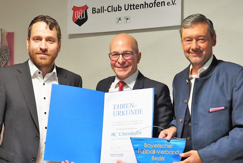 Robert Schraudner, Vizepräsident des bayerischen Fußballverbands (BFV) und hiesiger BFV-Bezirkschef, stellte generell die Frage in den Raum, ob Vereine an sich noch zeitgemäß seien, und lobte den BCU als Organisation, die relevante Grundwerte noch lebe. Der BFV-Kreisvorsitzende Florian Riepl stellte anerkennend heraus, dass dem Ball-Club Uttenhofen als allererstem Verein im Landkreis im Jahr 2017 das Gütesiegel "Goldene Raute mit Ähre" verliehen worden war. BLSV-Kreischef Harald Bruckmeier wusste mit persönlichen Anekdoten an die erfolgreiche Gründerzeit des BCU zu erinnern.
