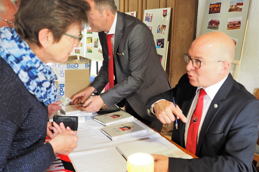 Der BCU-Vorsitzende Wolfgang Inderwies (rechts) hatte alle Hände voll zu tun, das von ihm verfasste "BCU-Buch" zu signieren.