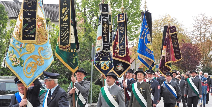 Die Fahnen-Abordnungen der Uttenhofener und Affalterbacher Vereine bildeten einen würdigen Rahmen für den Kirchenzug anlässlich des 50-jährigen Jubiläums des BC Uttenhofen.