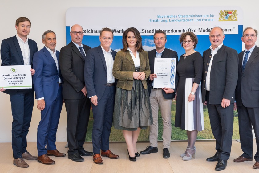 (ty) Das "Pfaffenhofener Land", ein Zusammenschluss der Kreisstadt mit den Gemeinden Scheyern, Hettenshausen und Ilmmünster, wurde jetzt auch offiziell als Öko-Modellregion anerkannt. Bei einem Festakt im bayerischen Staatsministerium für Ernährung, Landwirtschaft und Forsten in München überreichte die zuständige Ministerin Michaela Kaniber den Siegern der dritten Wettbewerbsrunde ihre Urkunden (Foto oben). "Damit können Sie gleich loslegen, Ihre überzeugenden Konzepte in die Tat umzusetzen und damit zu einer der bayerischen Vorbild-Regionen in Sachen Öko-Landbau werden", sagte sie.