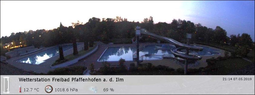 Mit Beginn dieses Jahres war der Betrieb des Pfaffenhofener Freibads, wie mehrfach berichtet, in die Verantwortung einer Bäder-GmbH übergegangen – eine 100-prozentige Tochter der hiesigen Stadtwerke. Weitere Informationen zum Pfaffenhofener Freibad und zu den Ticket-Preisen finden Sie hier. Wer einfach mal die Lage checken will, für den gibt es übrigens auch eine Live-Cam aus dem Freibad. Hier der direkte Link. Nachfolgend ein Screenshot vom heutigen Abend.
