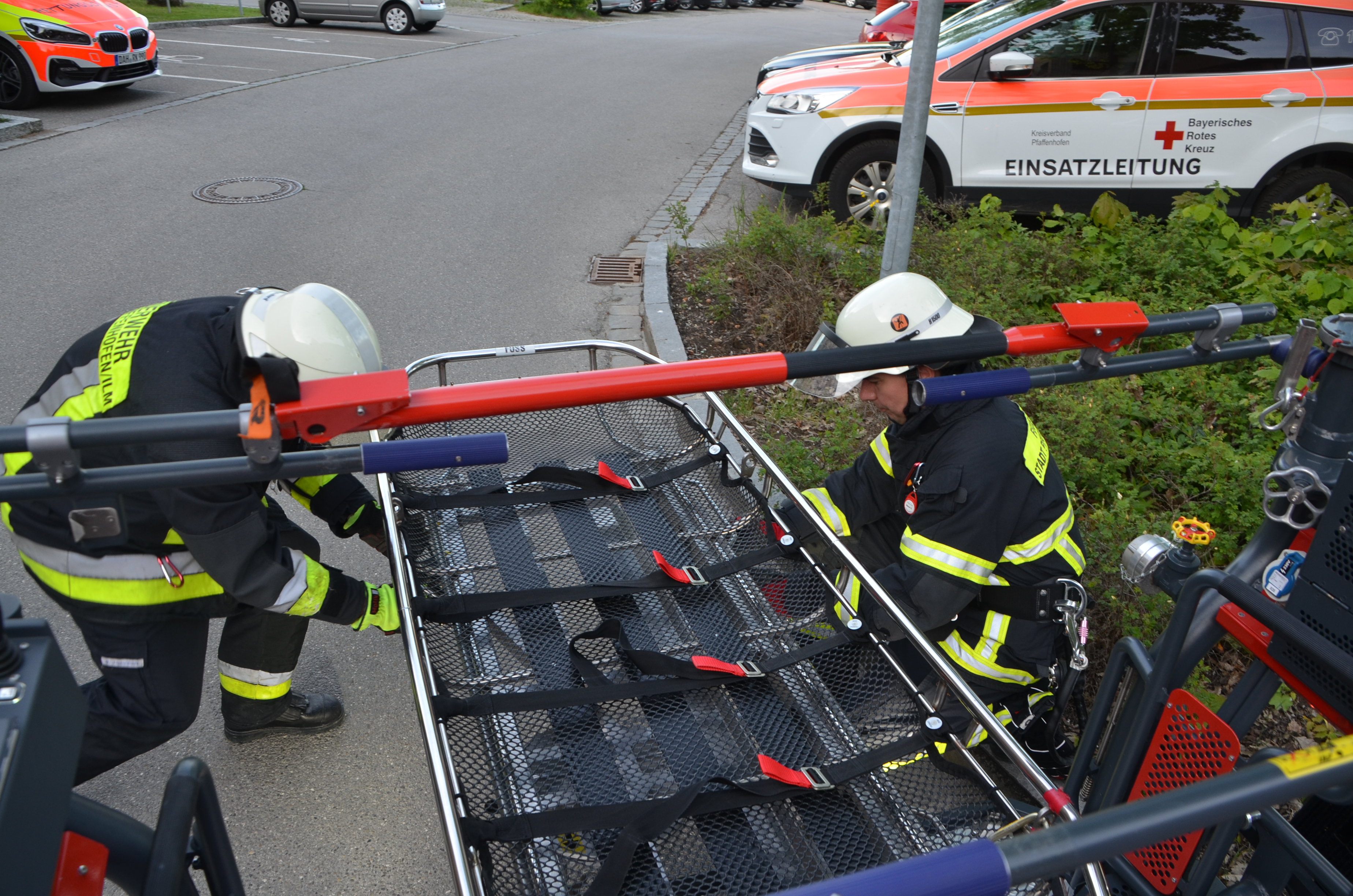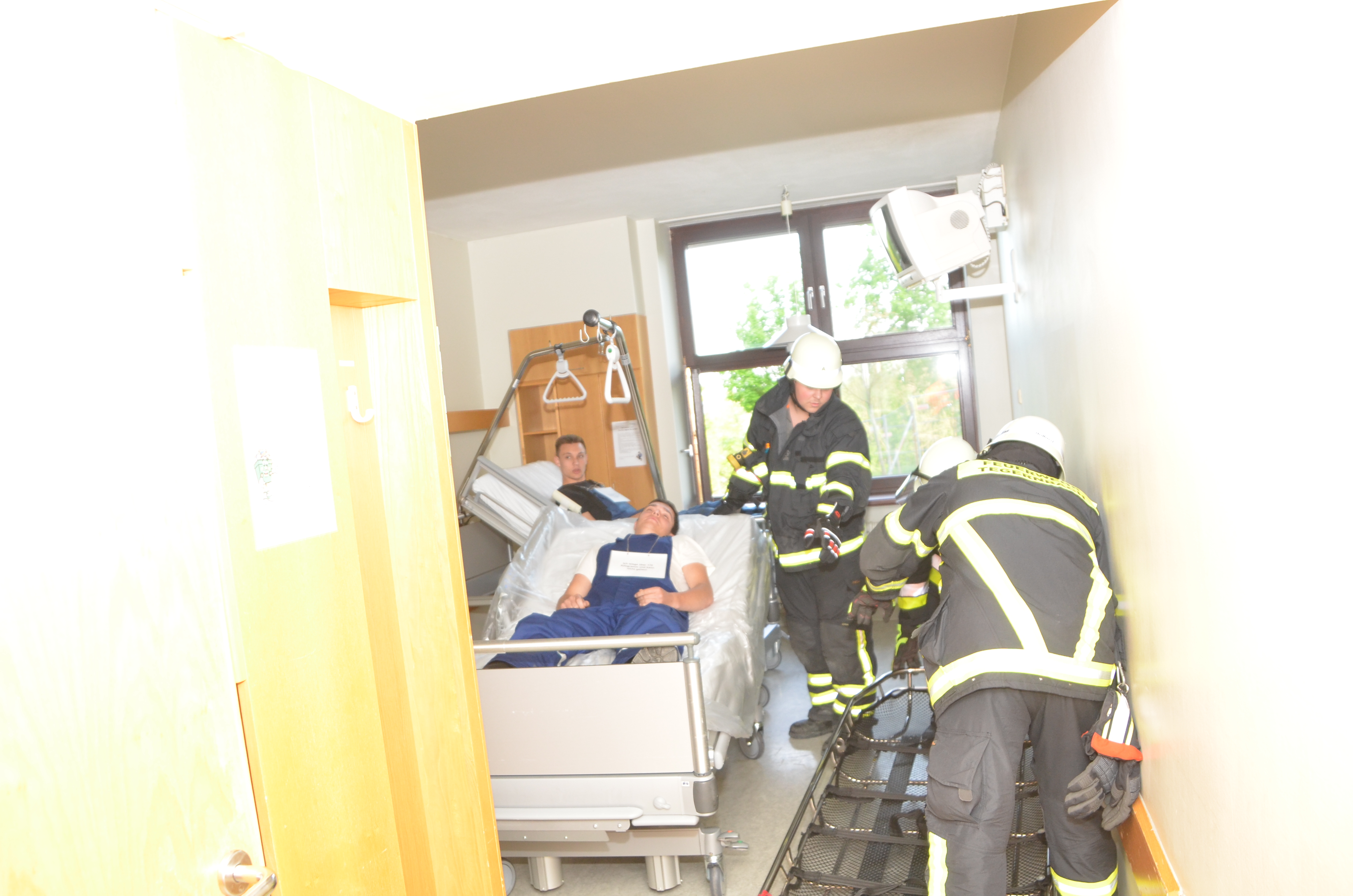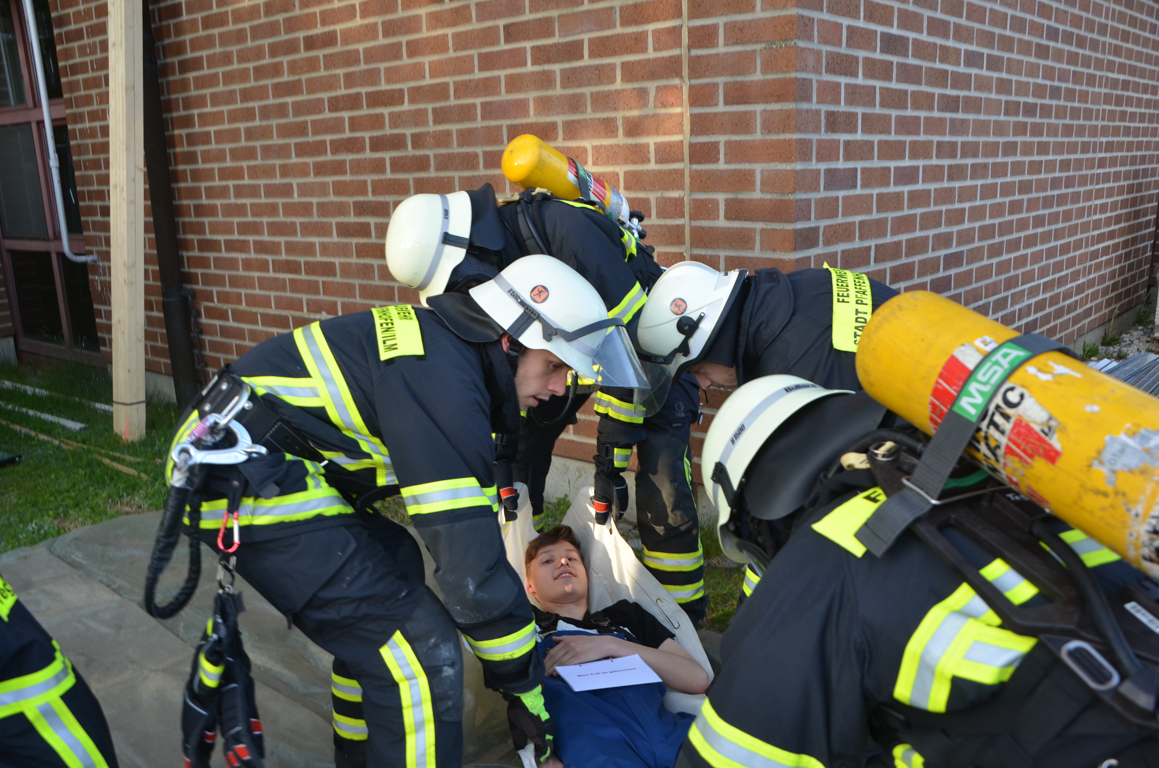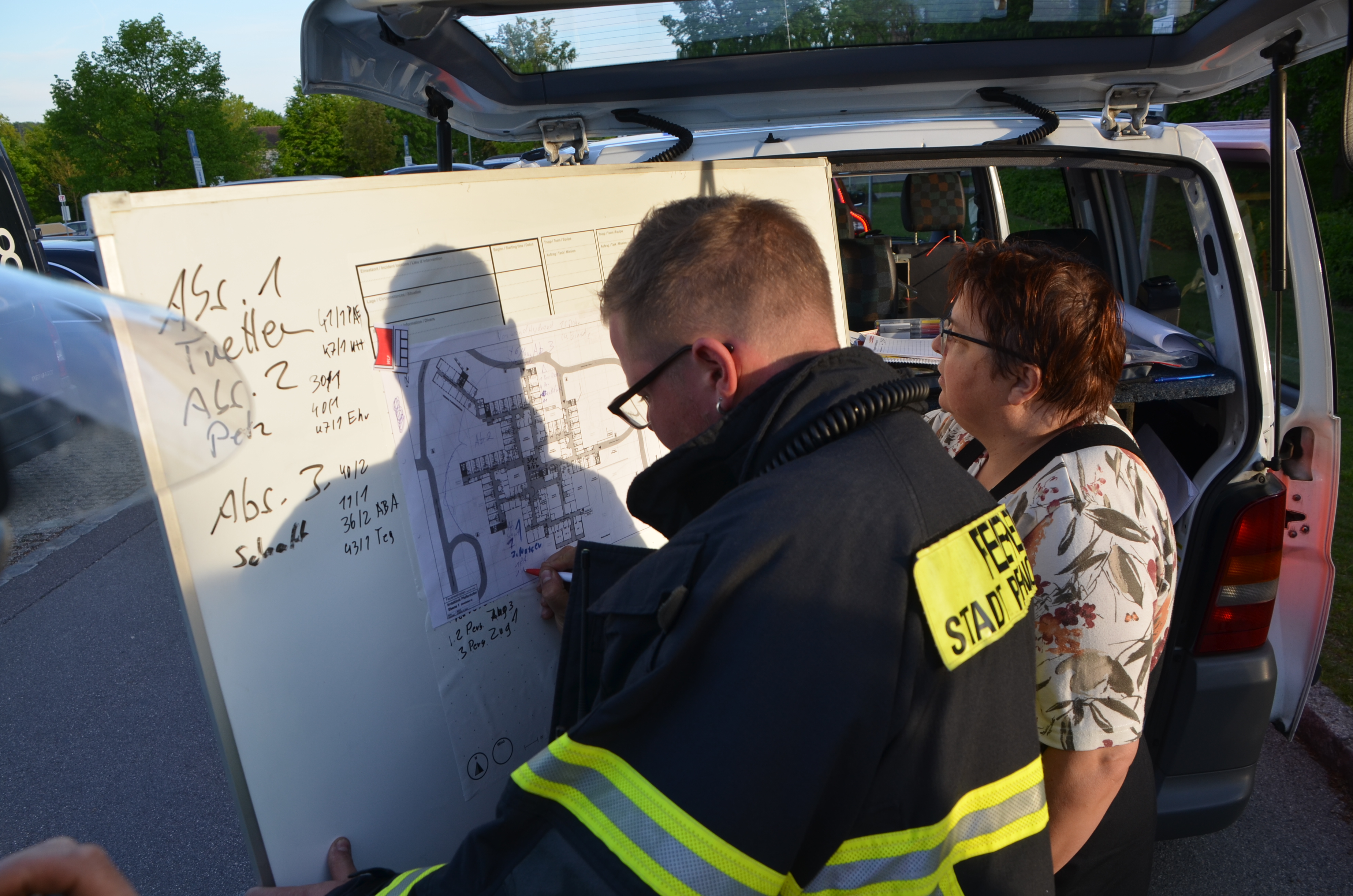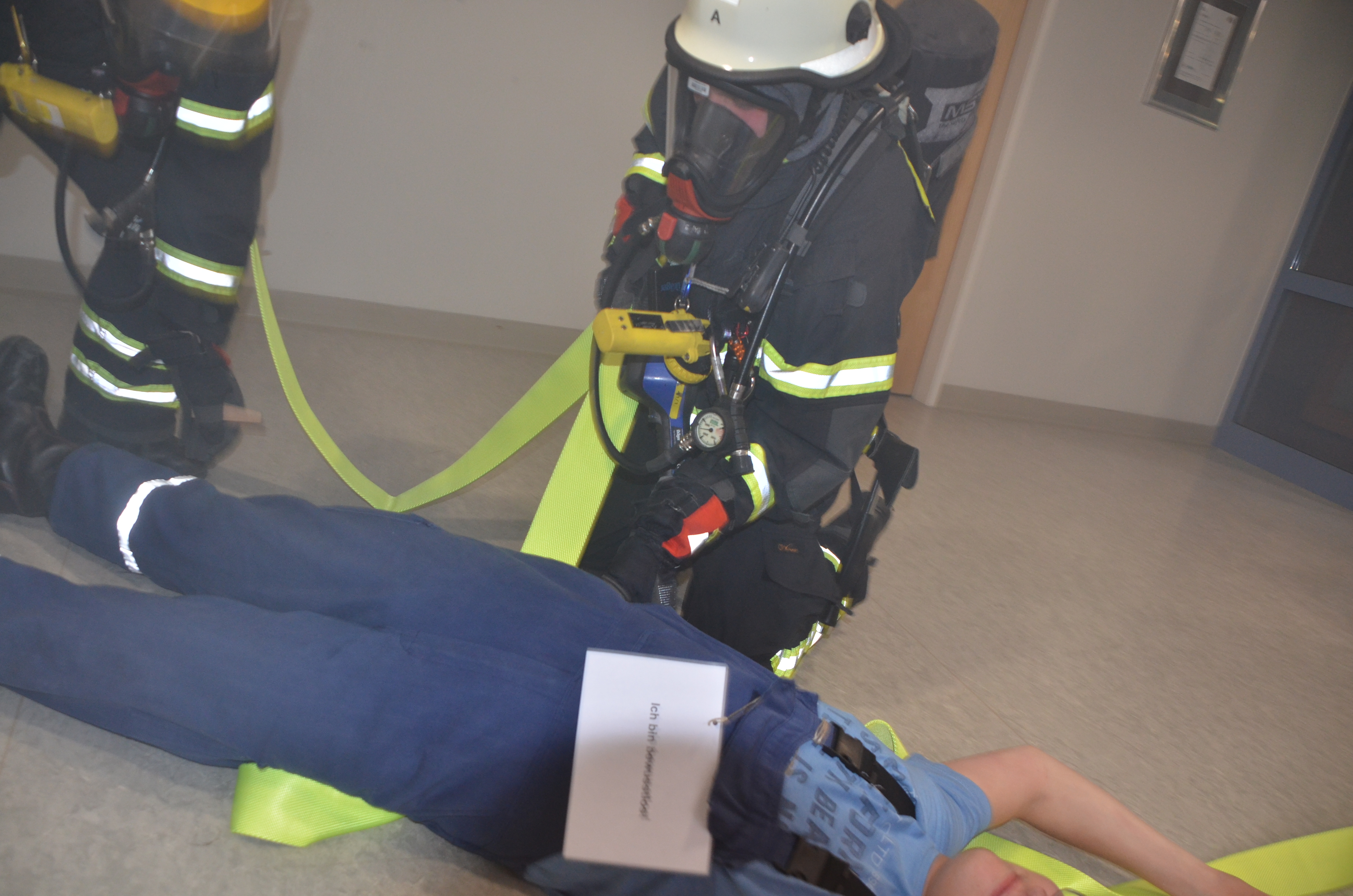 Die Retter mussten nach Lokalisierung des Brandmelde-Alarms im nachgestellten Rauchqualm zunächst versuchen, möglichst alle der 29 Opfer – dargestellt von Komparsen aus den Reihen der Jugend-Feuerwehr – zu finden. Danach galt es, sie aus den nicht wenigen Stations-Räumen möglichst unversehrt nach draußen zu bringen sowie die Erstversorgung zu übernehmen. Äußerst realistisch spielten dabei die jungen Floriansjünger die Verletzten. Eingebunden in das mit Rollstuhlfahrern oder bettlägrigen Personen anspruchsvolle Szenario waren übrigens auch sieben Azubis des Pfaffenhofener Krankenhauses.