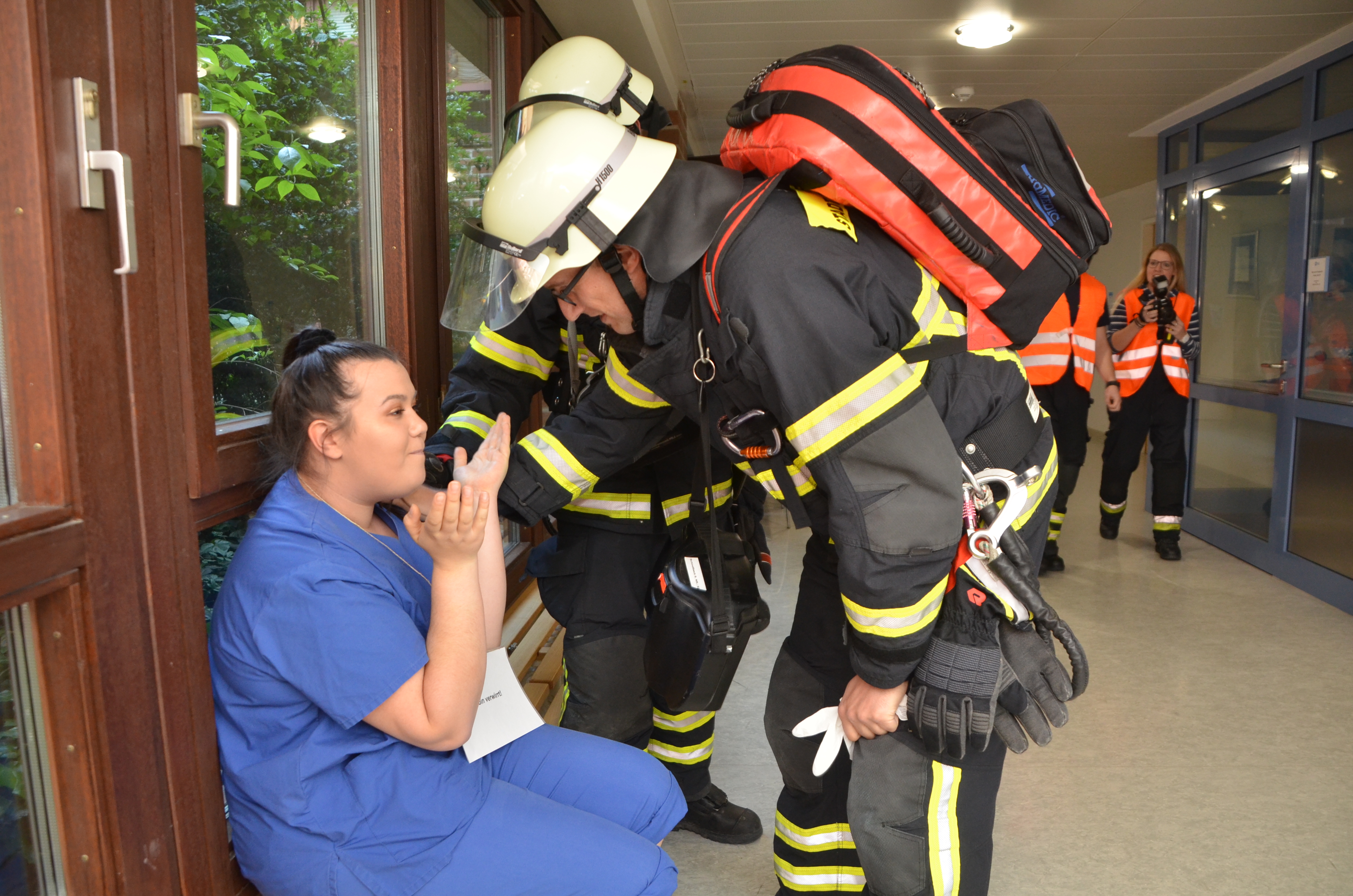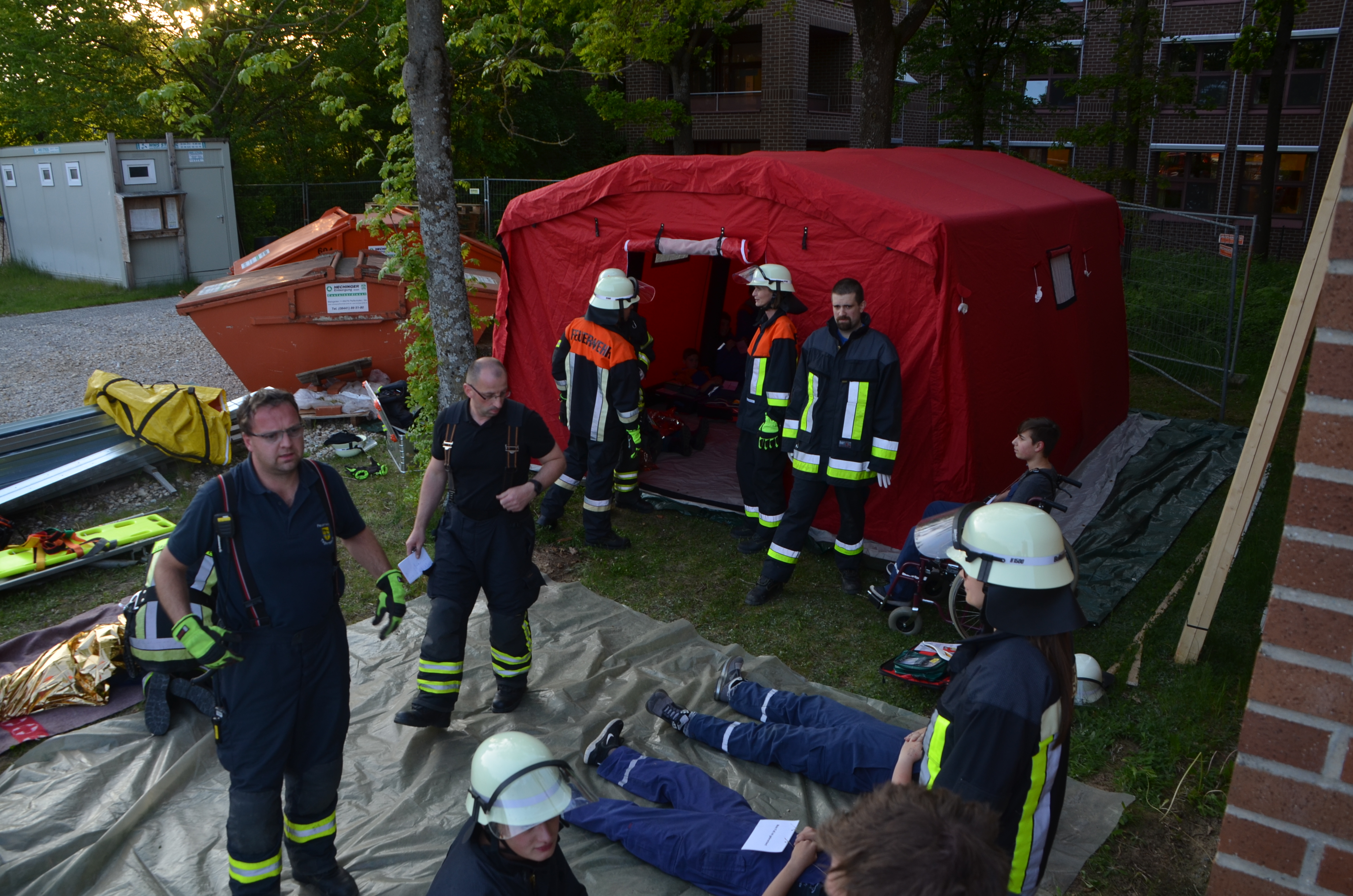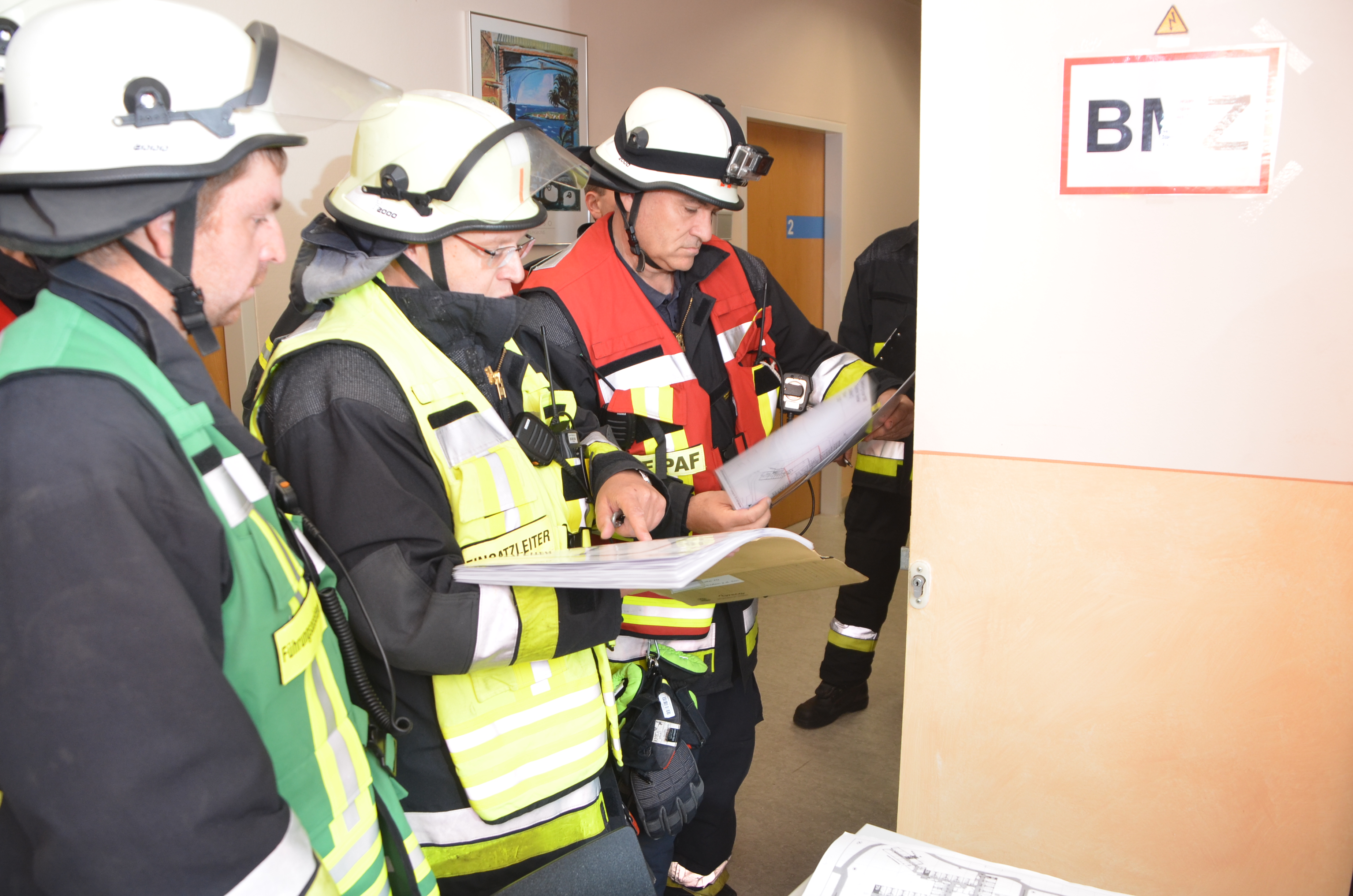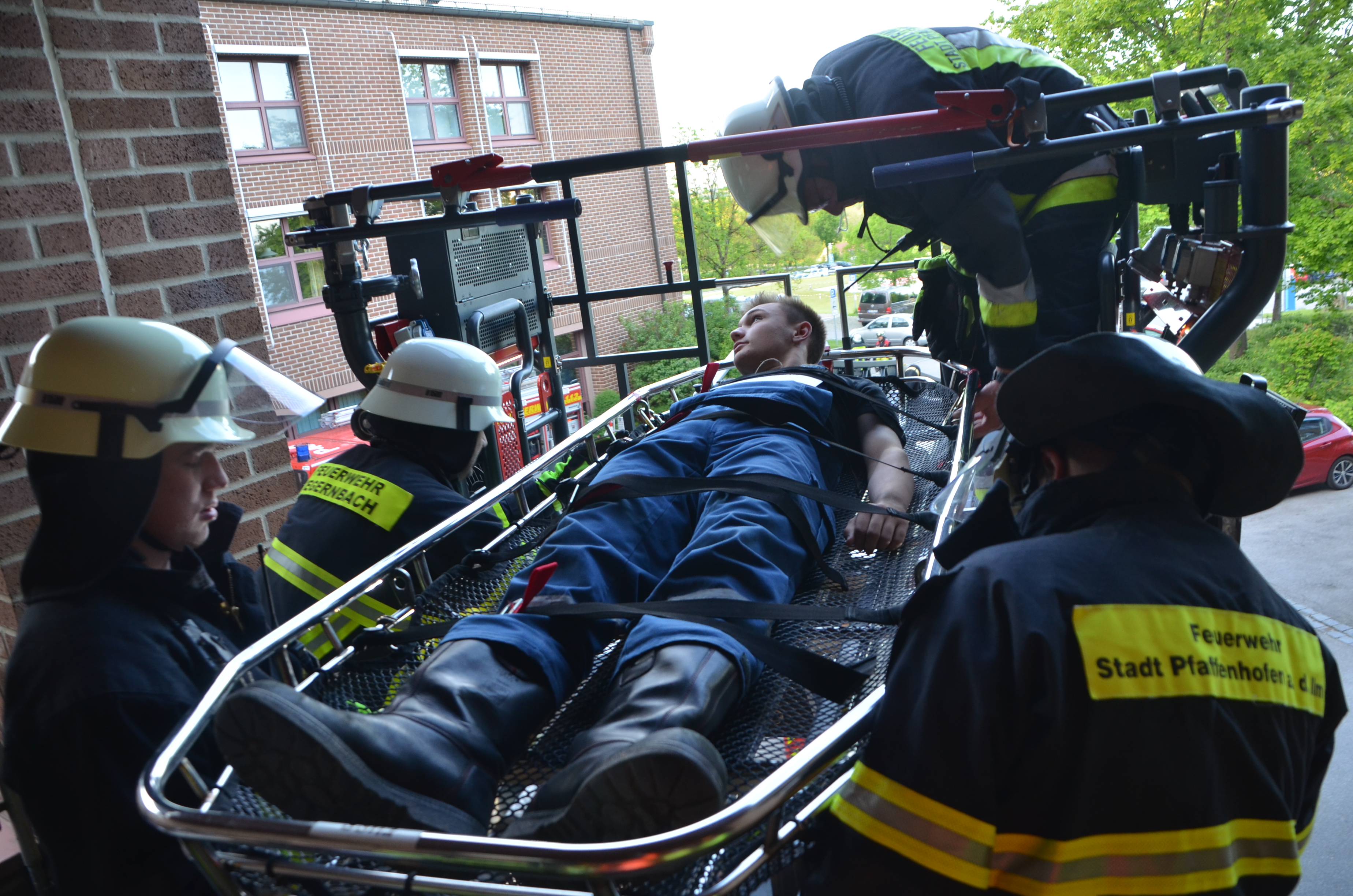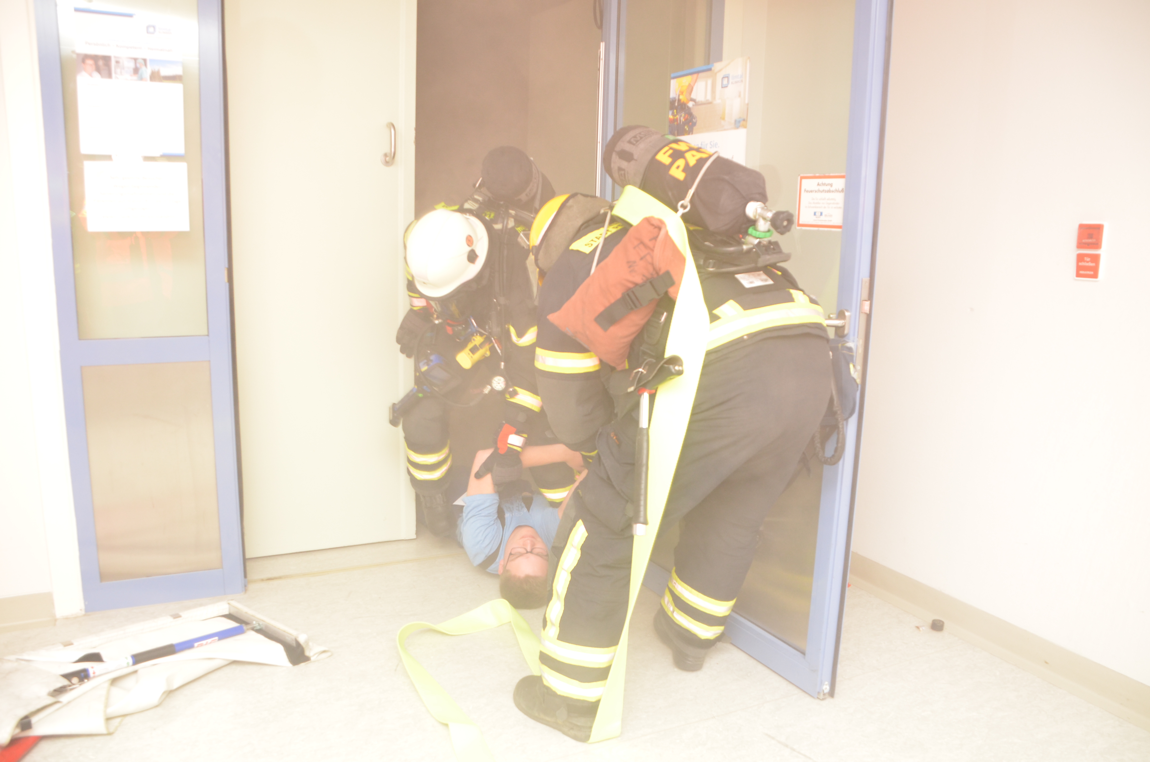 Die Retter mussten nach Lokalisierung des Brandmelde-Alarms im nachgestellten Rauchqualm zunächst versuchen, möglichst alle der 29 Opfer – dargestellt von Komparsen aus den Reihen der Jugend-Feuerwehr – zu finden. Danach galt es, sie aus den nicht wenigen Stations-Räumen möglichst unversehrt nach draußen zu bringen sowie die Erstversorgung zu übernehmen. Äußerst realistisch spielten dabei die jungen Floriansjünger die Verletzten. Eingebunden in das mit Rollstuhlfahrern oder bettlägrigen Personen anspruchsvolle Szenario waren übrigens auch sieben Azubis des Pfaffenhofener Krankenhauses.