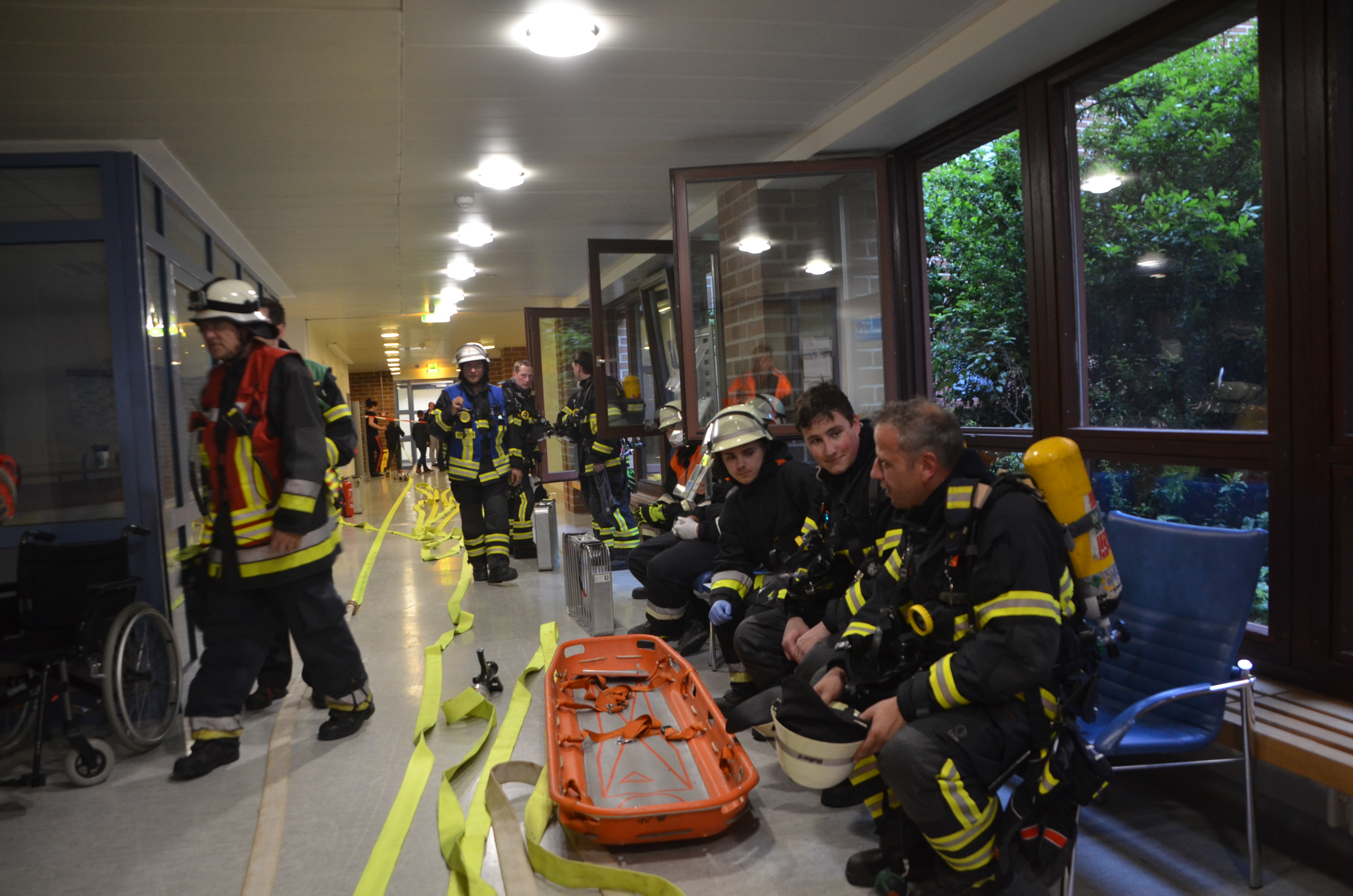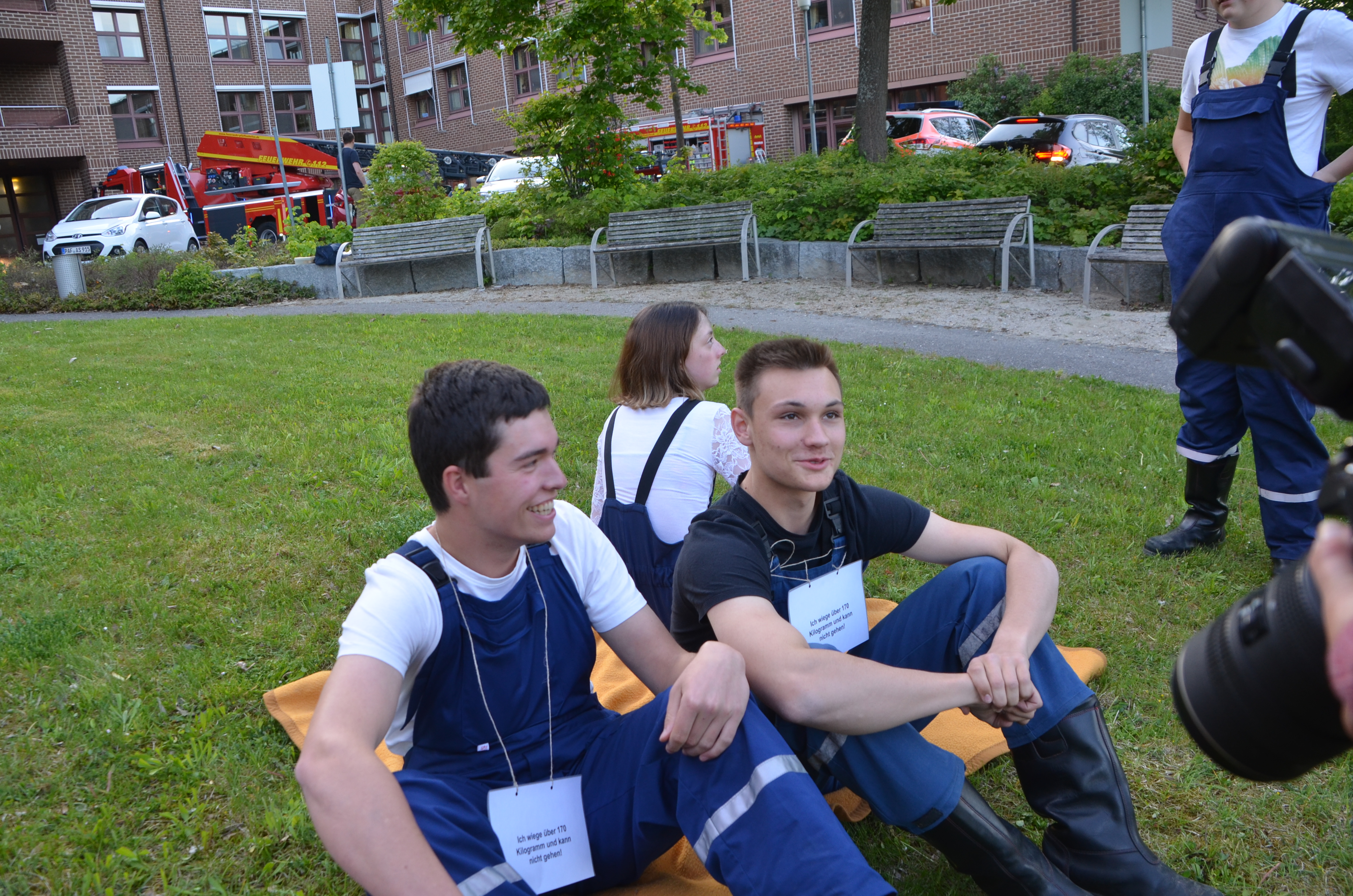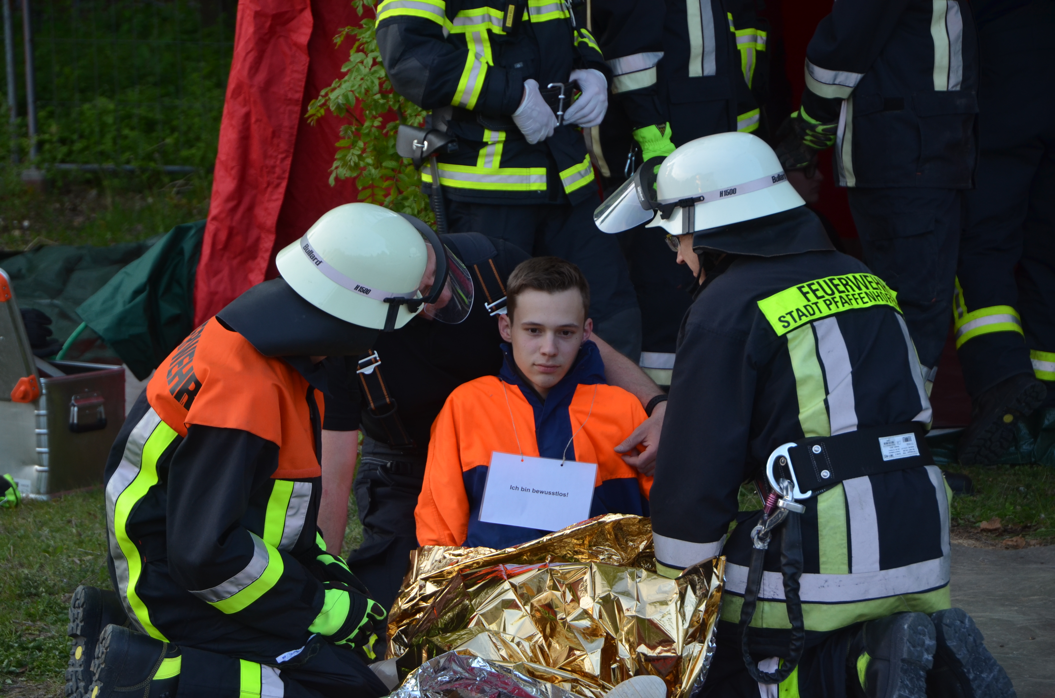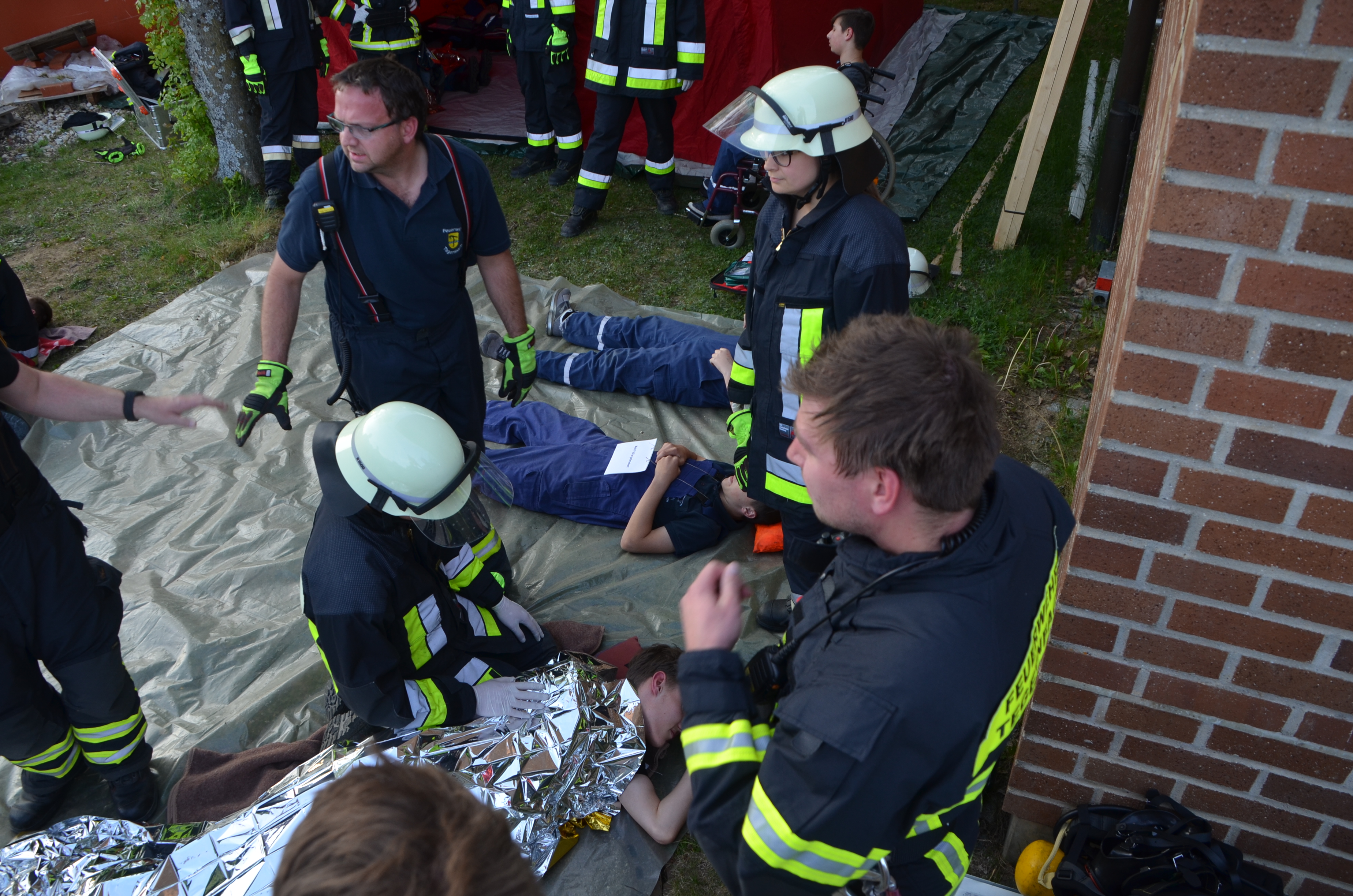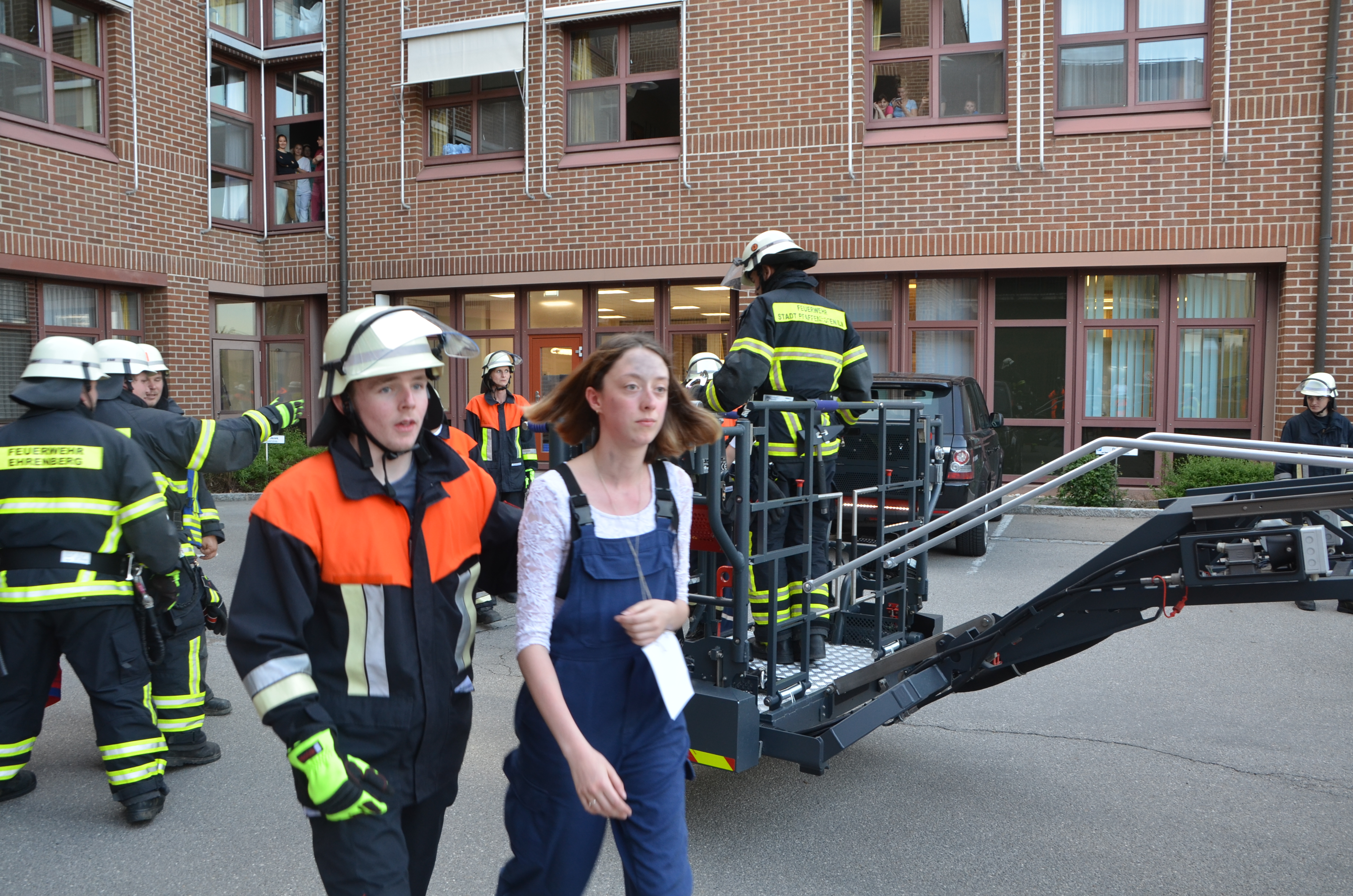 Die Retter mussten nach Lokalisierung des Brandmelde-Alarms im nachgestellten Rauchqualm zunächst versuchen, möglichst alle der 29 Opfer – dargestellt von Komparsen aus den Reihen der Jugend-Feuerwehr – zu finden. Danach galt es, sie aus den nicht wenigen Stations-Räumen möglichst unversehrt nach draußen zu bringen sowie die Erstversorgung zu übernehmen. Äußerst realistisch spielten dabei die jungen Floriansjünger die Verletzten. Eingebunden in das mit Rollstuhlfahrern oder bettlägrigen Personen anspruchsvolle Szenario waren übrigens auch sieben Azubis des Pfaffenhofener Krankenhauses.