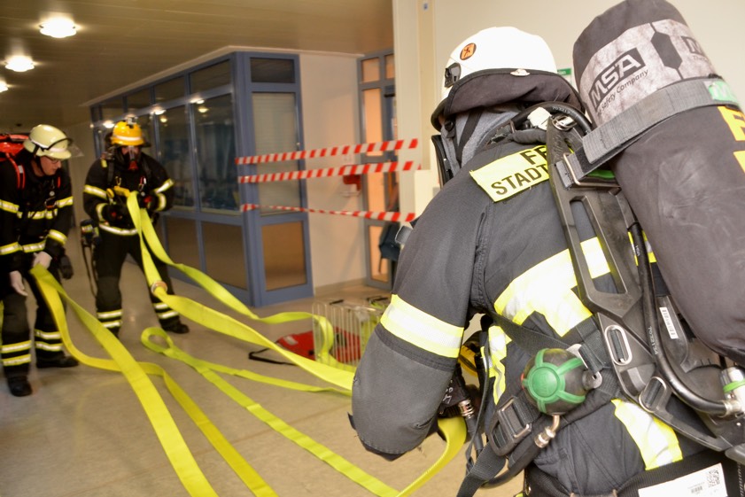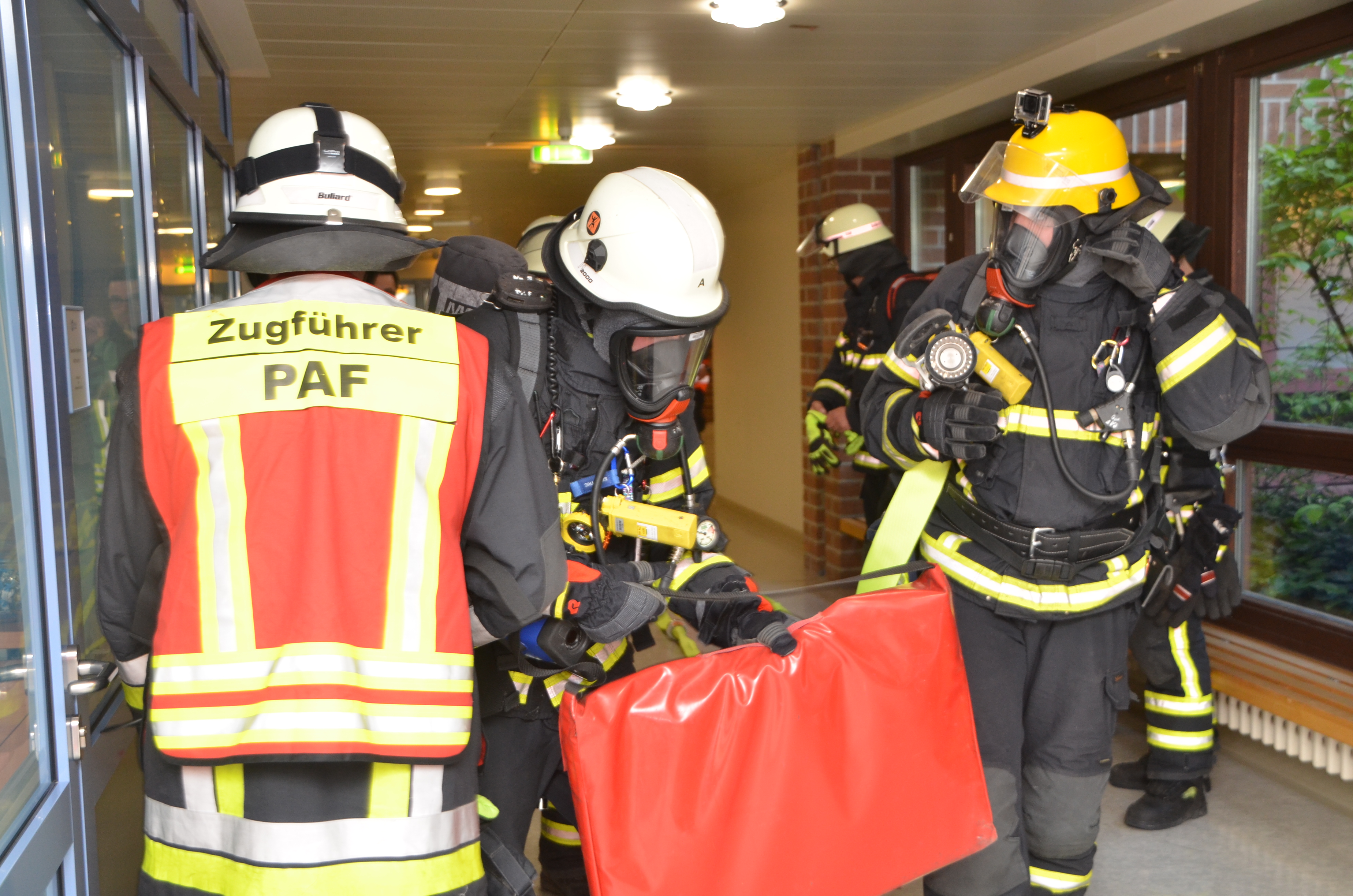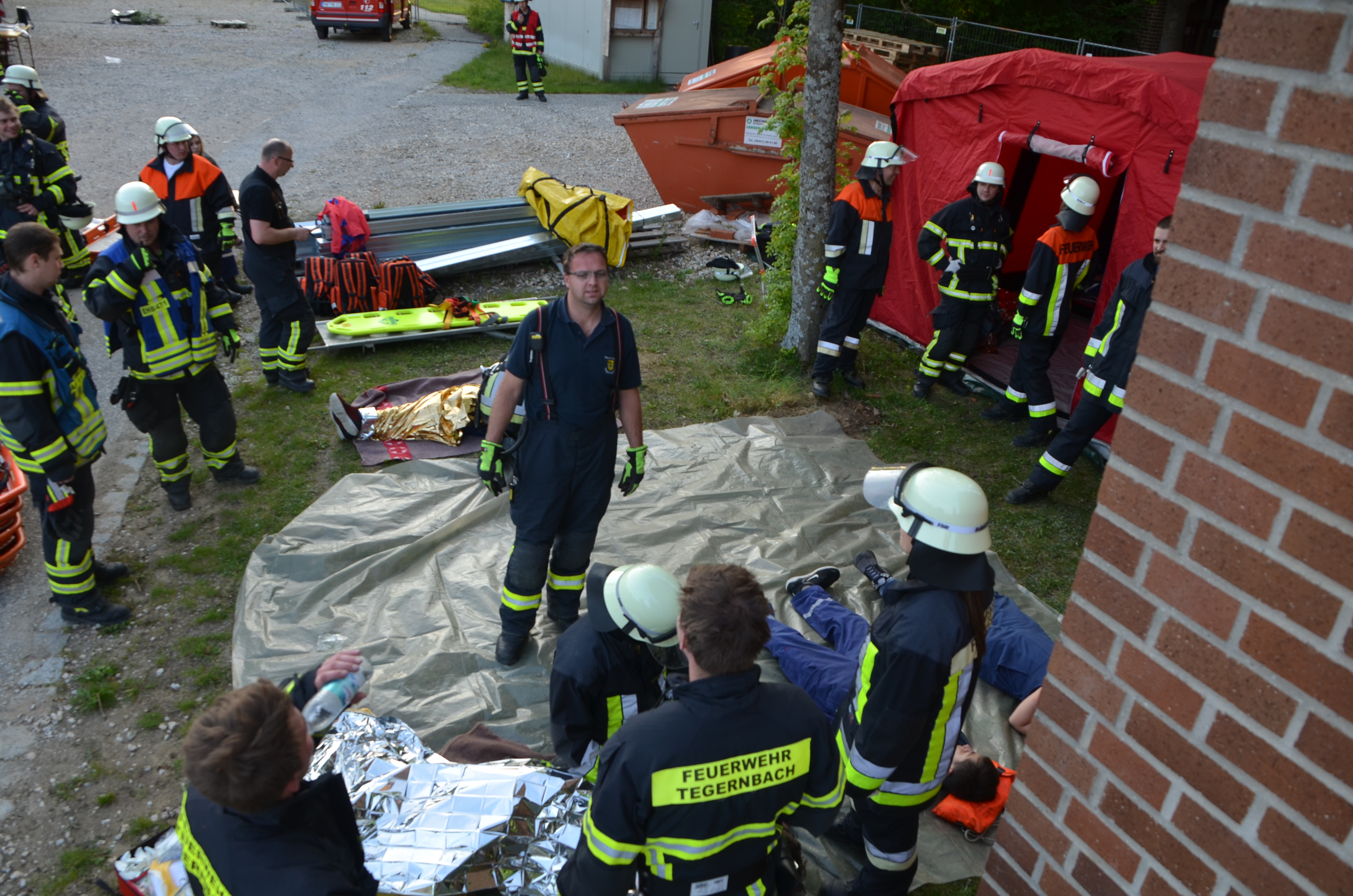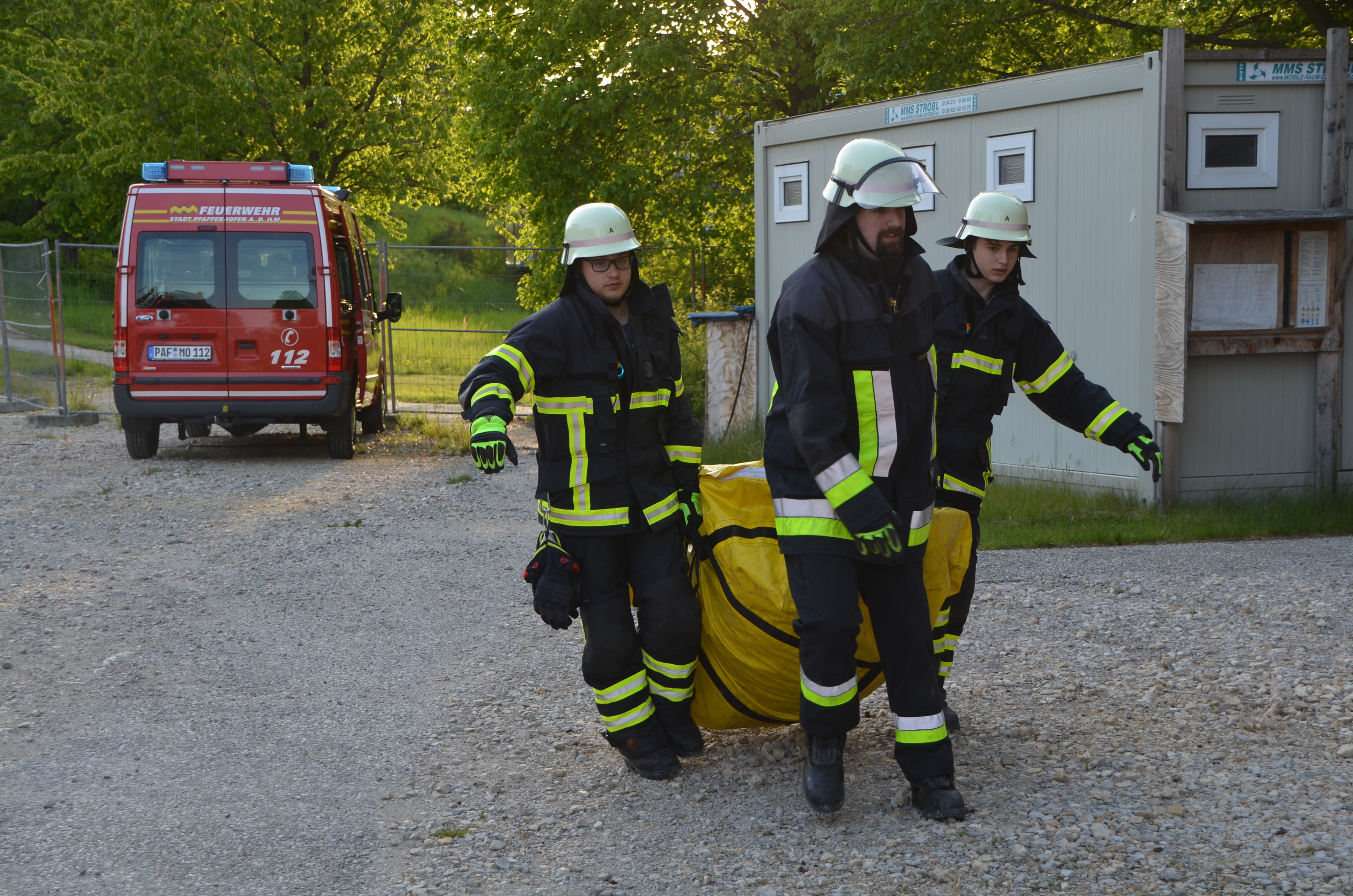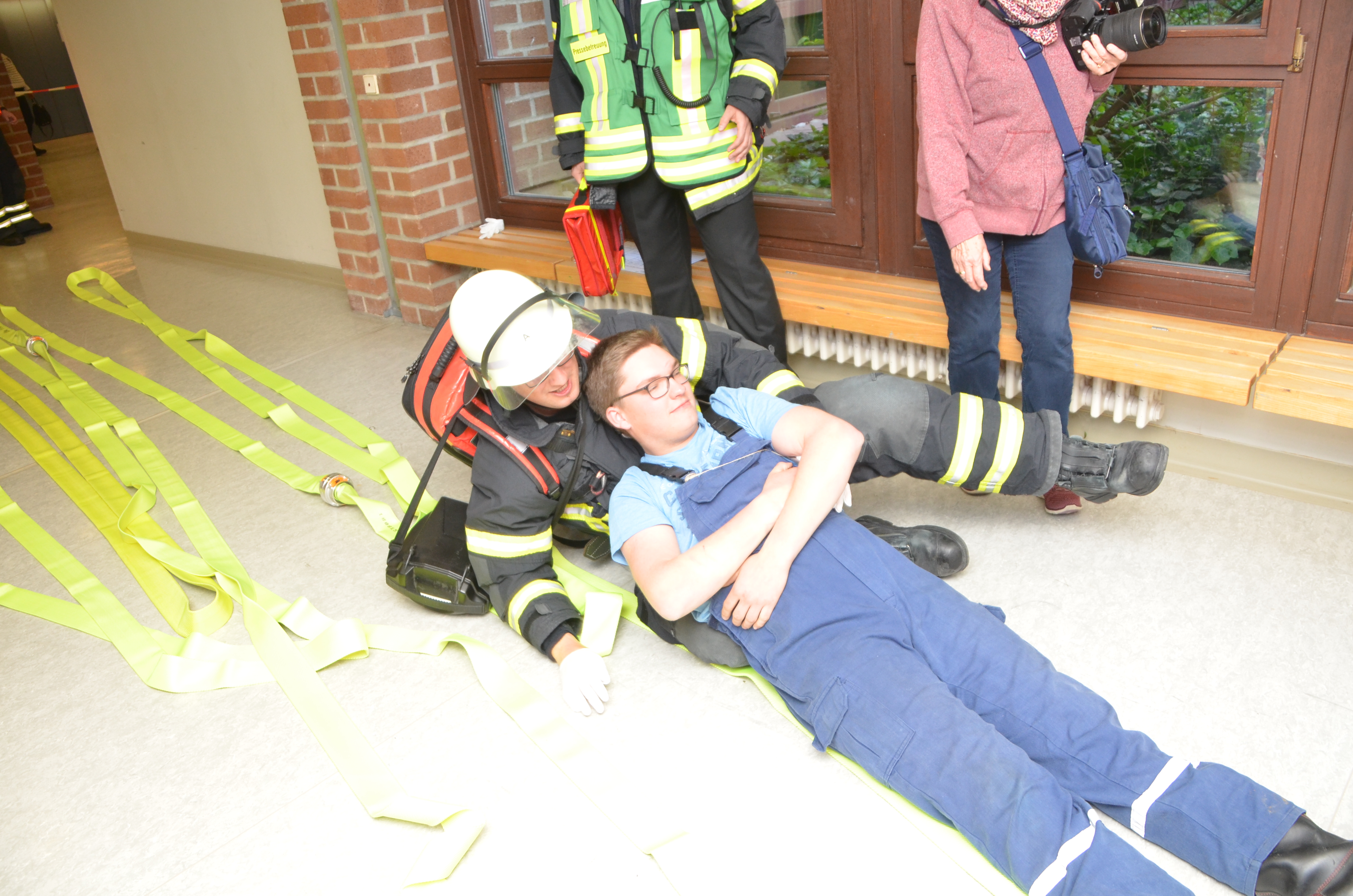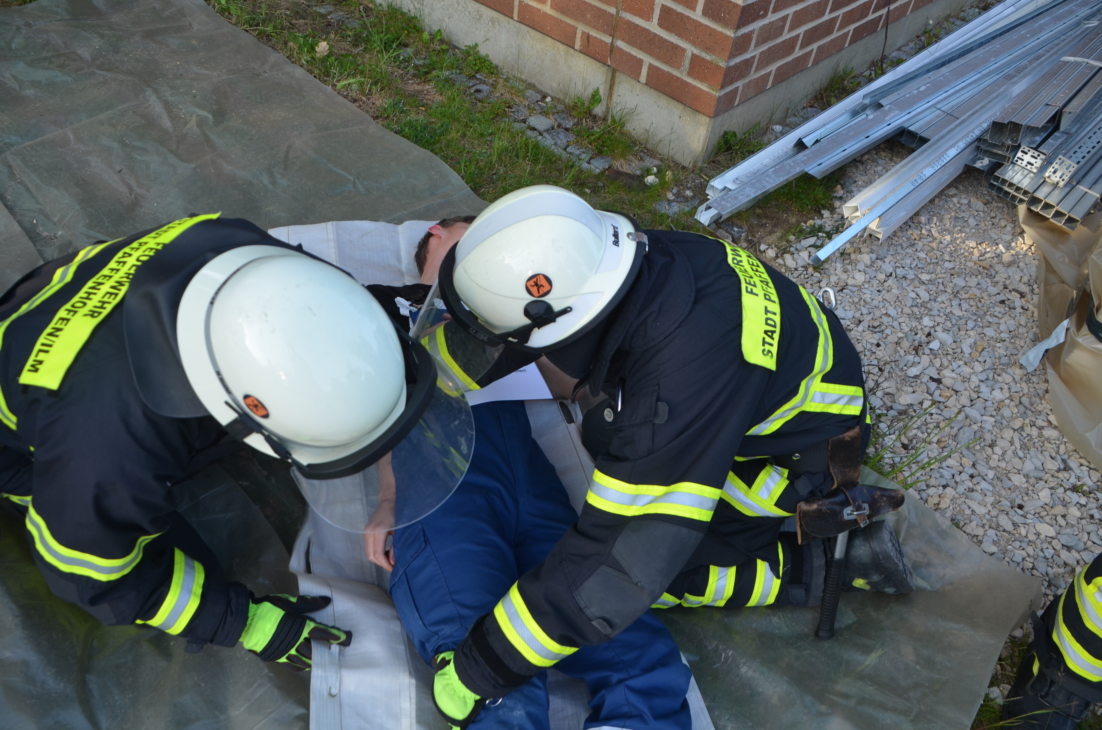 Die Retter mussten nach Lokalisierung des Brandmelde-Alarms im nachgestellten Rauchqualm zunächst versuchen, möglichst alle der 29 Opfer – dargestellt von Komparsen aus den Reihen der Jugend-Feuerwehr – zu finden. Danach galt es, sie aus den nicht wenigen Stations-Räumen möglichst unversehrt nach draußen zu bringen sowie die Erstversorgung zu übernehmen. Äußerst realistisch spielten dabei die jungen Floriansjünger die Verletzten. Eingebunden in das mit Rollstuhlfahrern oder bettlägrigen Personen anspruchsvolle Szenario waren übrigens auch sieben Azubis des Pfaffenhofener Krankenhauses.
