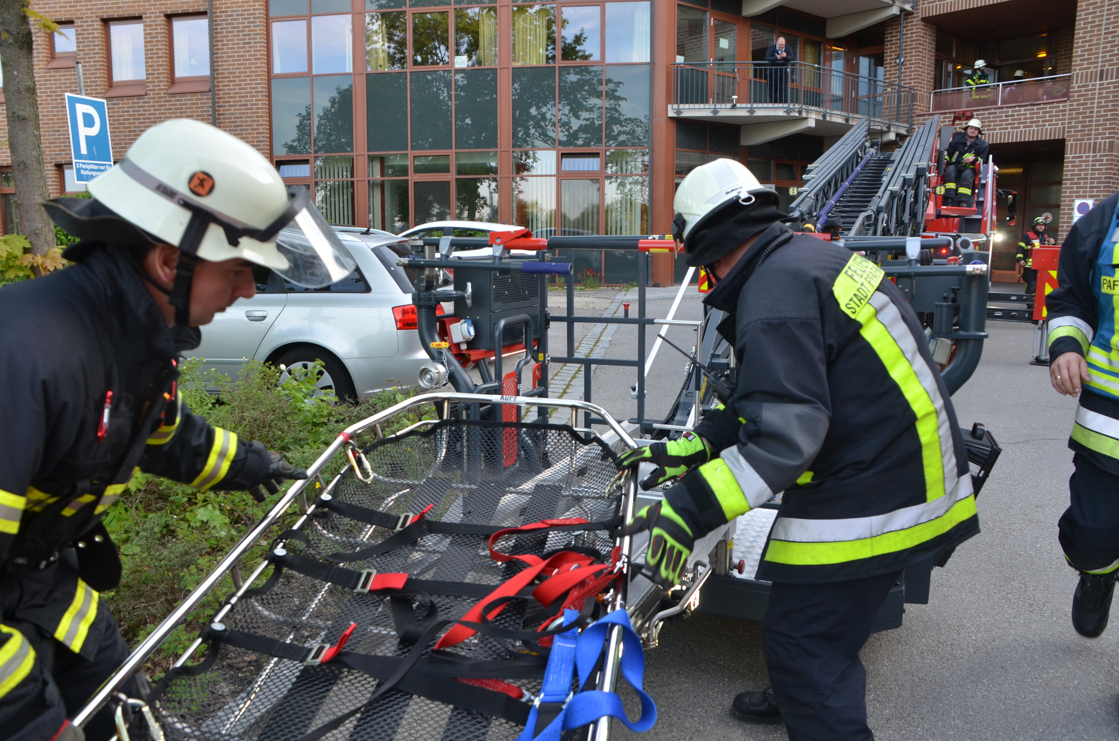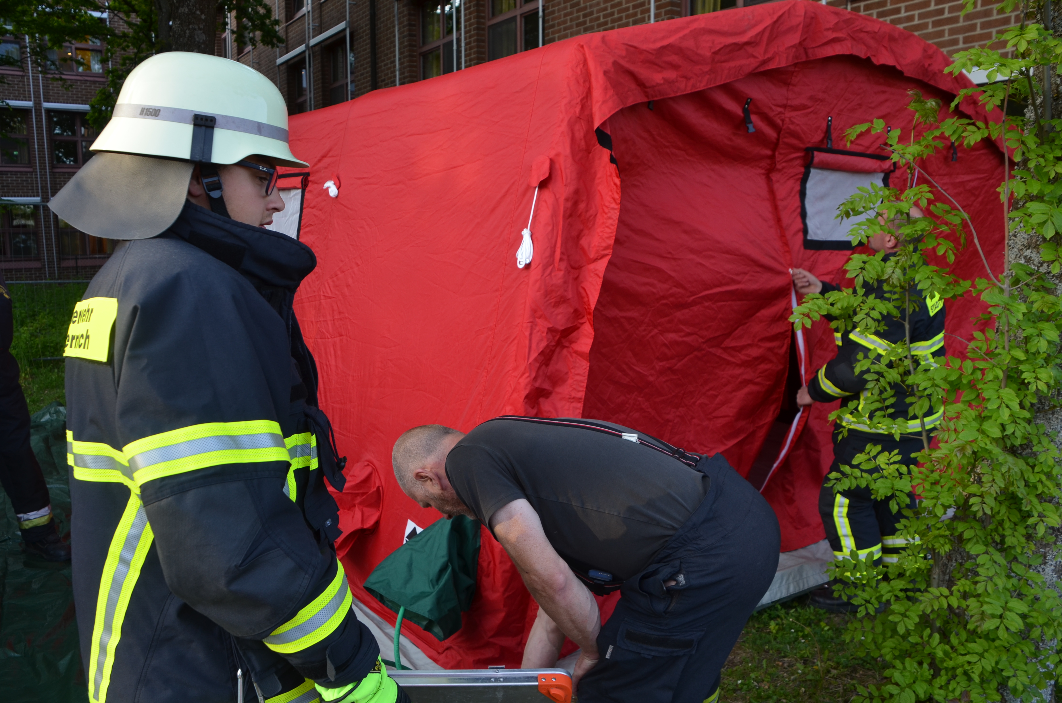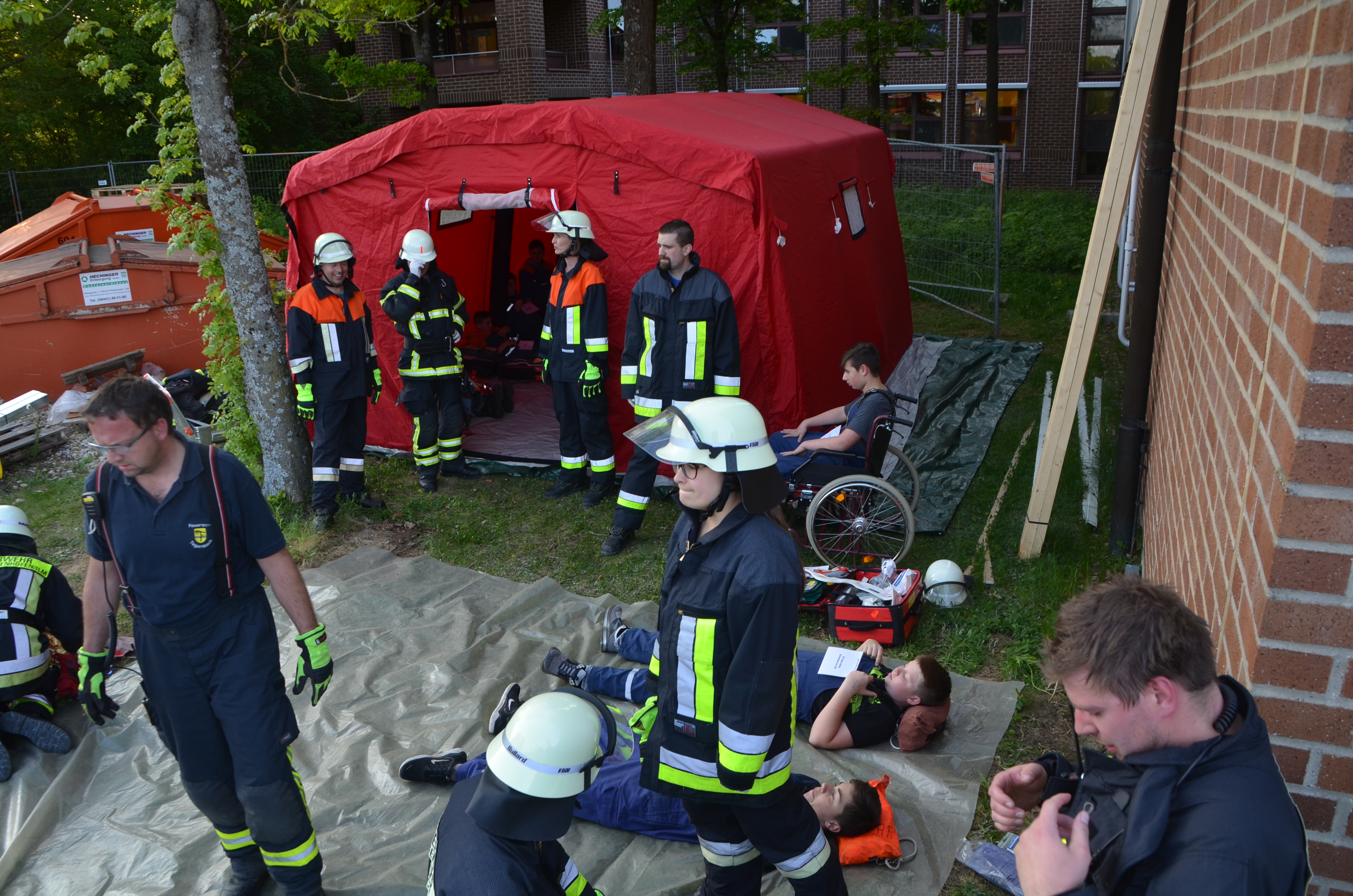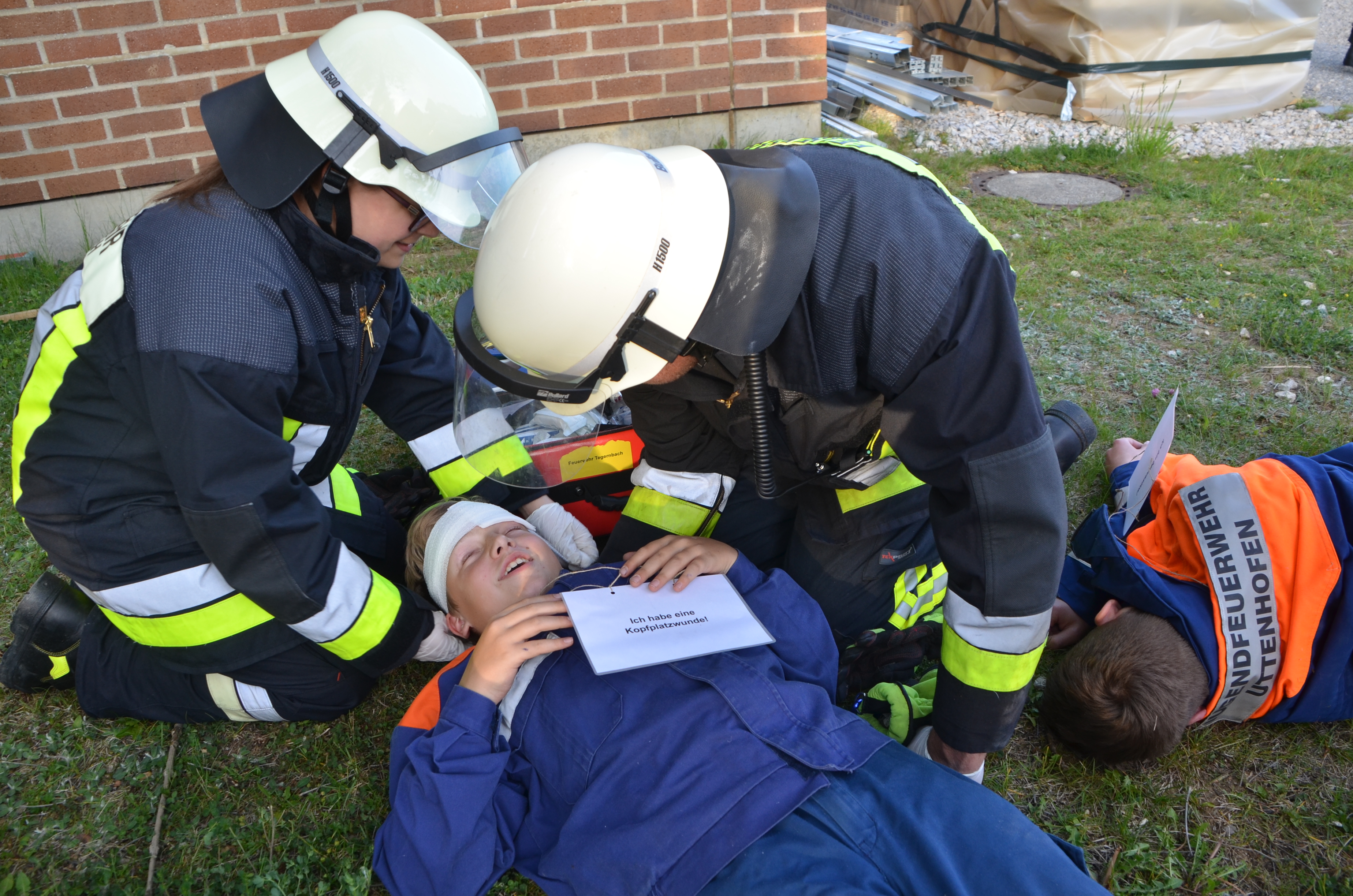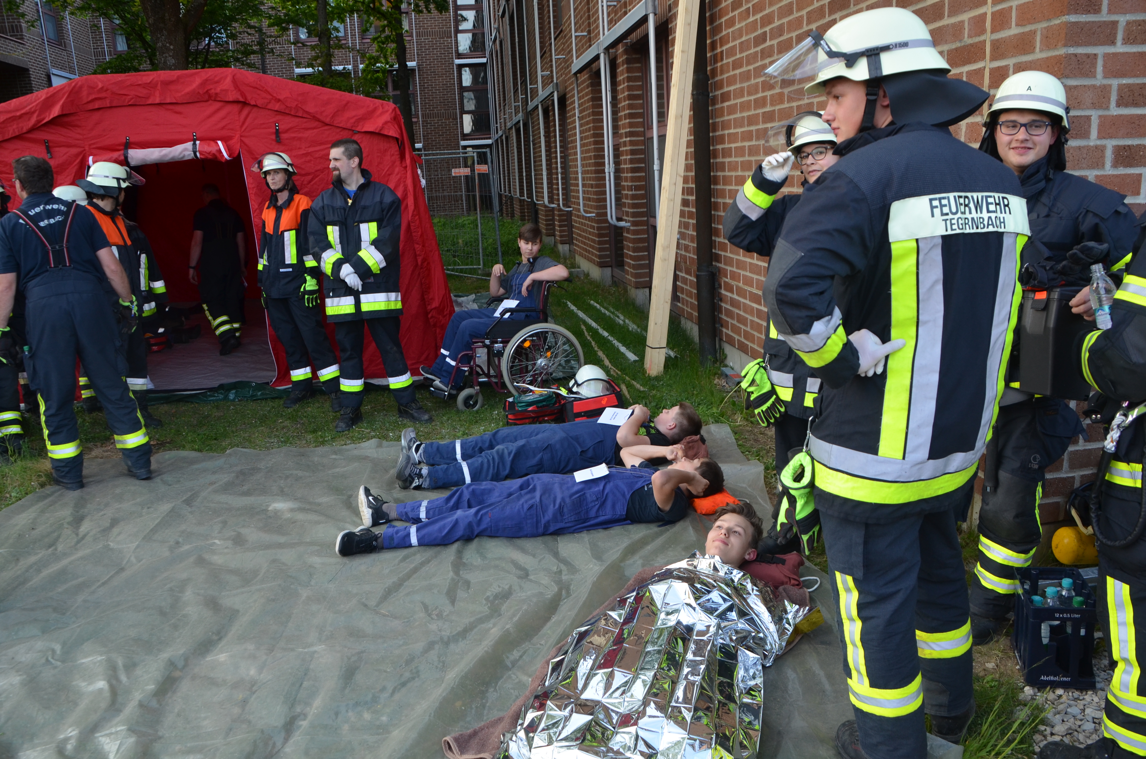 Die Retter mussten nach Lokalisierung des Brandmelde-Alarms im nachgestellten Rauchqualm zunächst versuchen, möglichst alle der 29 Opfer – dargestellt von Komparsen aus den Reihen der Jugend-Feuerwehr – zu finden. Danach galt es, sie aus den nicht wenigen Stations-Räumen möglichst unversehrt nach draußen zu bringen sowie die Erstversorgung zu übernehmen. Äußerst realistisch spielten dabei die jungen Floriansjünger die Verletzten. Eingebunden in das mit Rollstuhlfahrern oder bettlägrigen Personen anspruchsvolle Szenario waren übrigens auch sieben Azubis des Pfaffenhofener Krankenhauses.