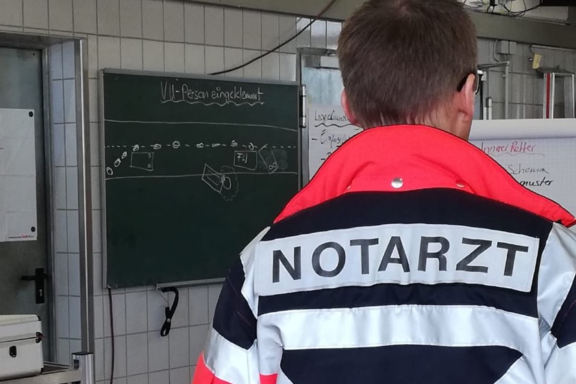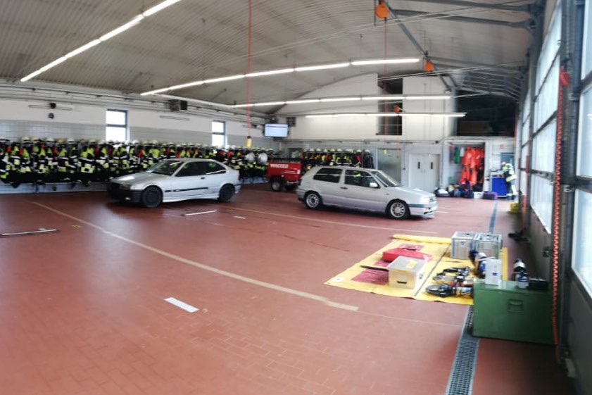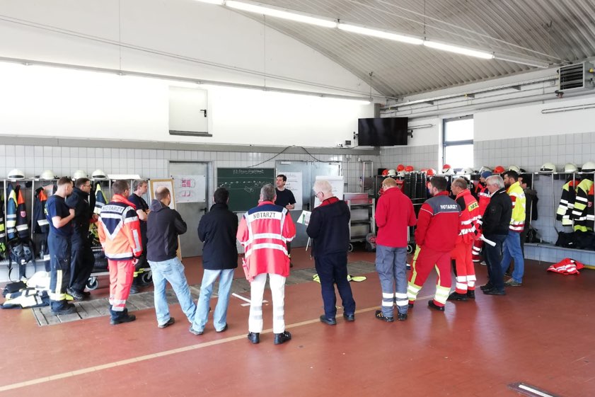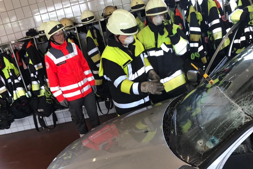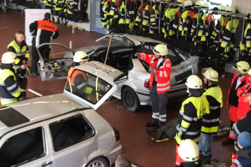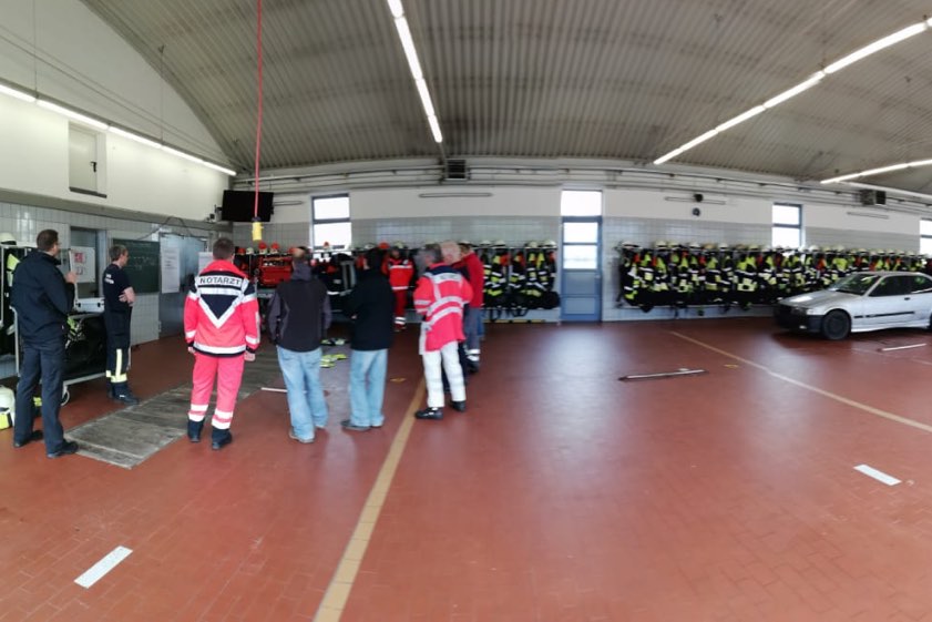Zwölf Mediziner aus der Region informierten sich bei der Feuerwehr über den Einsatz-Ablauf nach einem Verkehrsunfall.