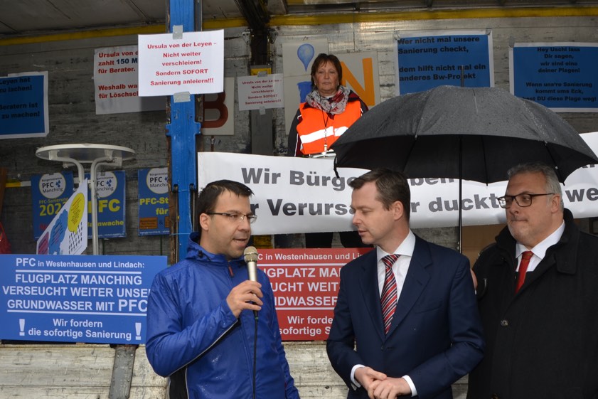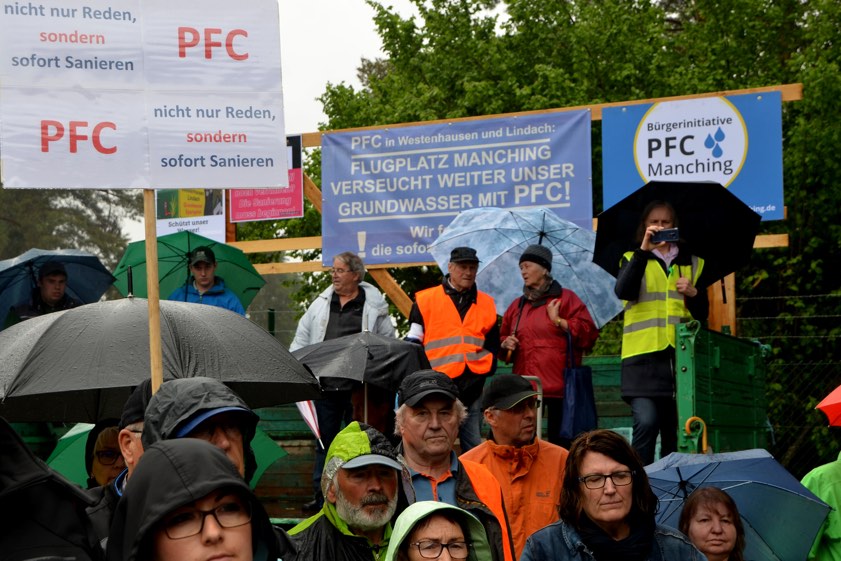 Die Aktivisten fordern die sofortige Beendigung einer weiteren PFC-Belastung des Wassers, die umgehende Sanierung der kontaminierten Böden und nicht zuletzt eine transparente Öffentlichkeitsarbeit der Bundeswehr. Schützenhilfe bekamen die unzufriedenen Bürger gestern aus dem Nachbar-Landkreis Neuburg-Schrobenhausen. Denn auch in Neuburg gibt es, wie bundesweit an vielen weiteren Standorten, eine PFC-Belastung am dortigen Militärflugplatz und dem Weicheringer Munitionsdepot.