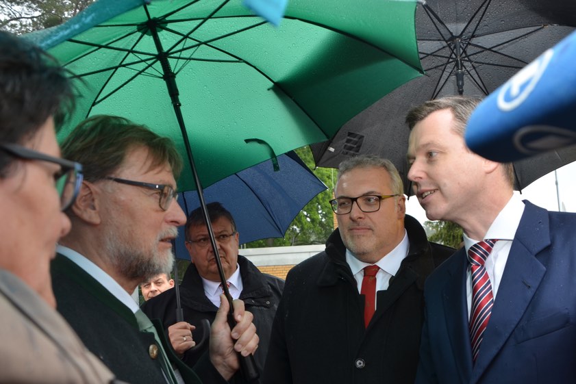 Landrat Martin Wolf (von links), Manchings Bürgermeister Herbert Nerb, Bundestags-Abgeordneter Erich Irlstorfer und Staatssekretär Thomas Silberhorn.