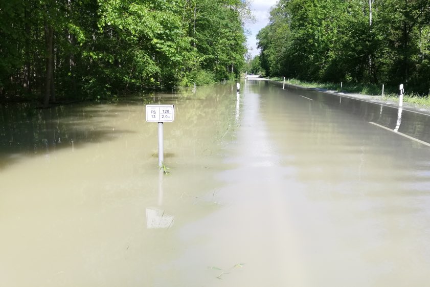 Der Isarradweg im Landkreis Freising ist laut Mitteilung des Landratsamts wegen Überflutung bis auf weiteres weitreichend gesperrt. Die Kreisstraße FS13 zwischen Oberhummel und Gaden ist derzeit überflutet und bleibt weiterhin voll gesperrt.