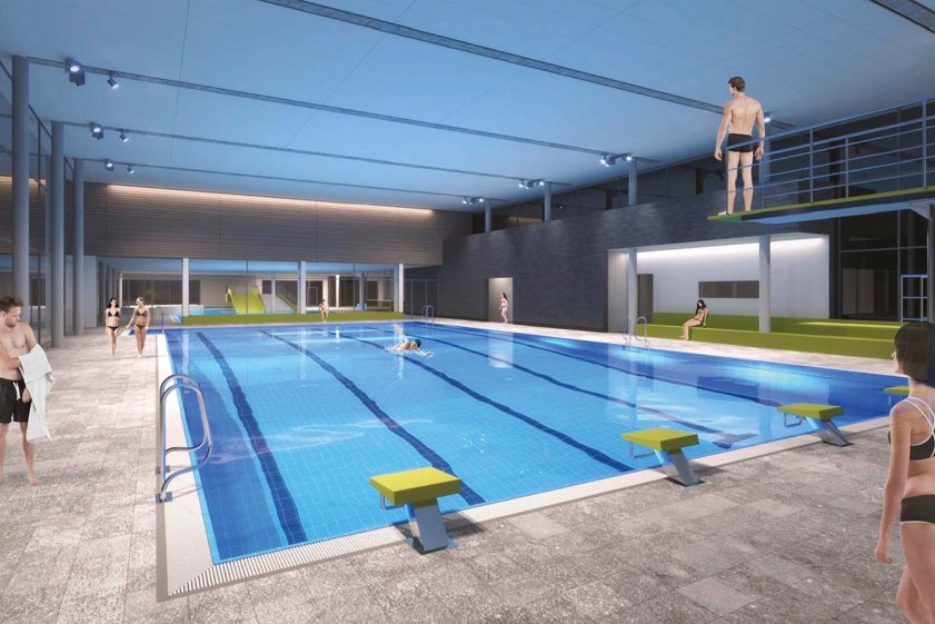 Das Hallenbad ist als wettkampf-taugliches Sport- und Familienbad samt kleiner textilfreier Sauna geplant. Die Anforderungen als so genannte Dreifach-Übungsstätte, die Ausstattungs-Schwerpunkte aus dem Ergebnis der Bürgerbefragung aus dem Jahr 2017 sowie die abgestimmten Anforderungen der Schulen und Vereine seien in die Planung eingeflossen, erinnert heute eine Sprecherin der Stadtverwaltung.