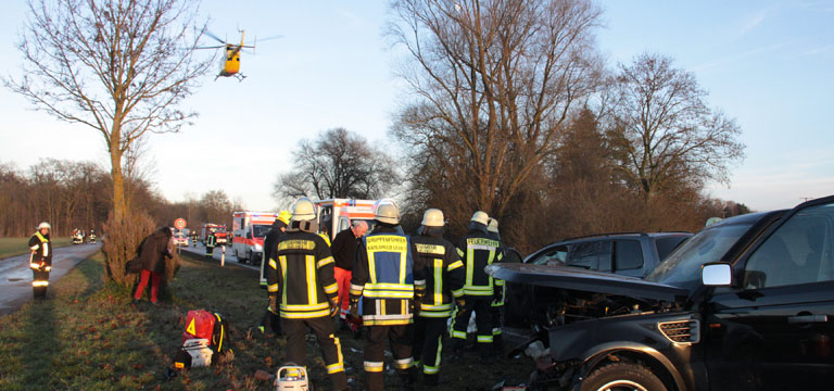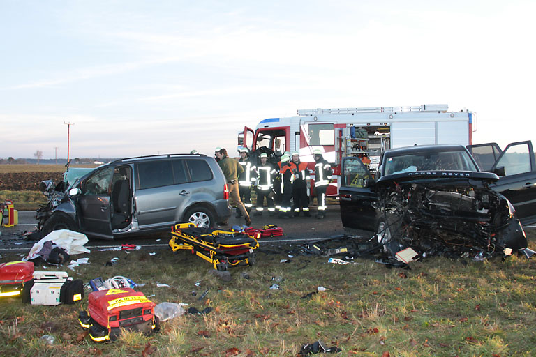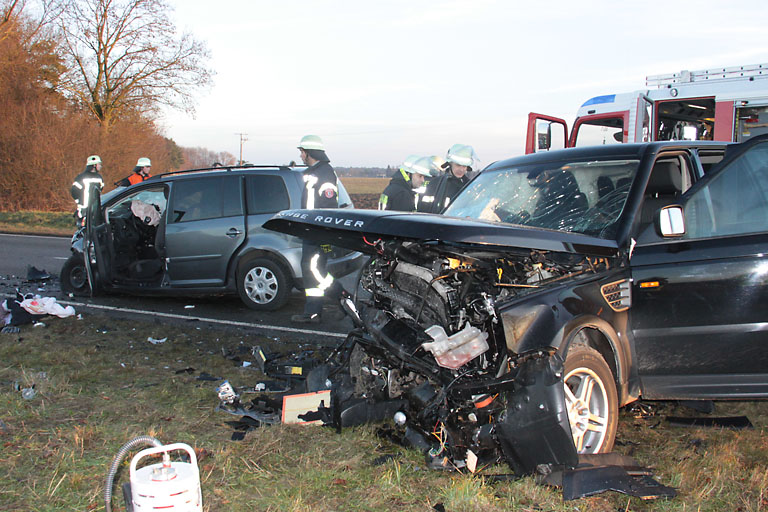 (ty) Zu einem Frontalzusammenstoß zweier Pkw kam es am heutigen Nachmittag gegen 15.30 Uhr auf der B 16. Ein 72-Jähriger aus Feldkirchen bei München fuhr mit seinem Geländewagen von Neuburg kommend in Richtung Ingolstadt. Beifahrerin war seine zwei Jahre jüngere Ehefrau. Etwa 400 Meter vor der Abzweigung nach Lichtenau geriet er auf die Gegenfahrbahn und stieß mit dem entgegenkommenden VW einer 28-jährigen Karlshulderin zusammen. Die junge Frau war mit ihrem knapp zwei Jahre altem Sohn offenbar auf dem Nachhauseweg.