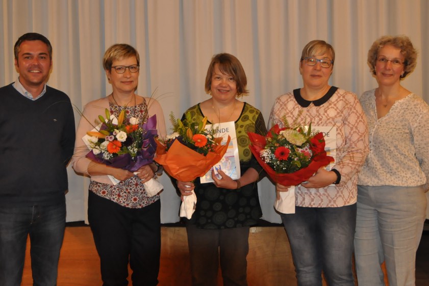 Zusammen mit Bürgermeister Herker überreichte Bücherei-Leiterin Kneidl dann Urkunden und Anstecknadeln des Sankt-Michaels-Bundes an Martina Thierjung, Birgit Loy und Annett Quarti – als Anerkennung für mehrjährige ehrenamtliche Tätigkeit in der Bücherei (Foto oben). Den Abschluss des Abends bildete ein Austausch in lockerer Runde.