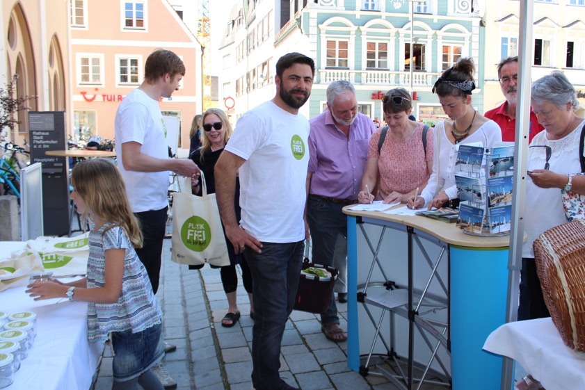 Die Kreisstadt hatte die Kampagne "Plastikfrei – ich bin dabei" vor zwei Jahren gestartet, um den übermäßigen Verbrauch von Plastik – vor allem von Plastik-Verpackungen – zu reduzieren. Sie stieß damit sowohl bei Fieranten auf dem Wochenmarkt als auch bei Einzelhändlern und Bürgern auf großes Interesse.